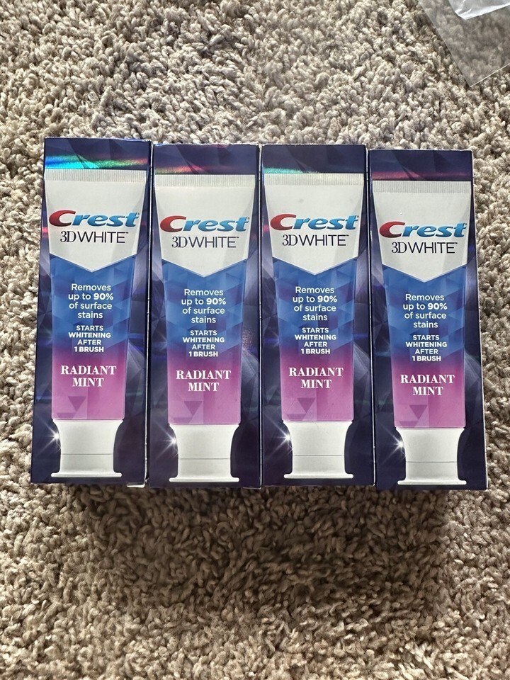 4-Pack Crest 3D White Radiant Mint Fluoride Toothpaste Whitening 2.7 oz Ex 03/26