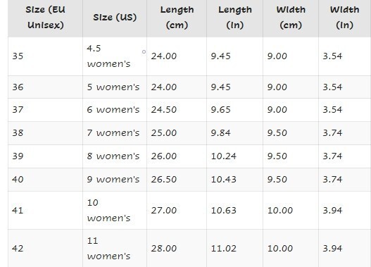 | EUR Shoe Sizes: |