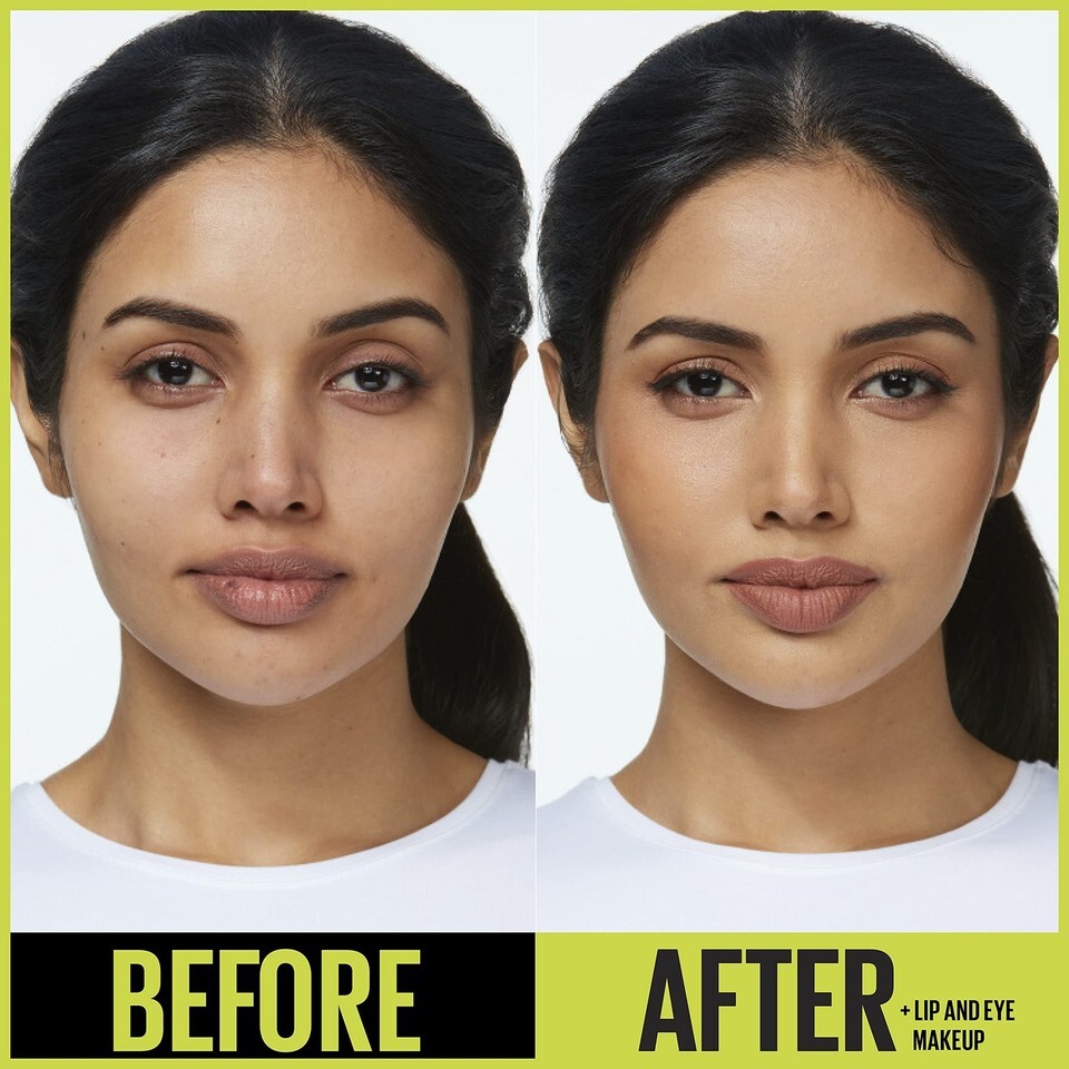 Be your own professional makeup artist with Maybelline's full coverage 24H foundation. Saturated color pigments provide an ultra-transforming effect in this long-lasting foundation. The lightweight, yet high-impact coverage formula glides onto the skin for a flawless finish that lasts all day. Oil free. Doesn't clog pores. Dermatologist tested.