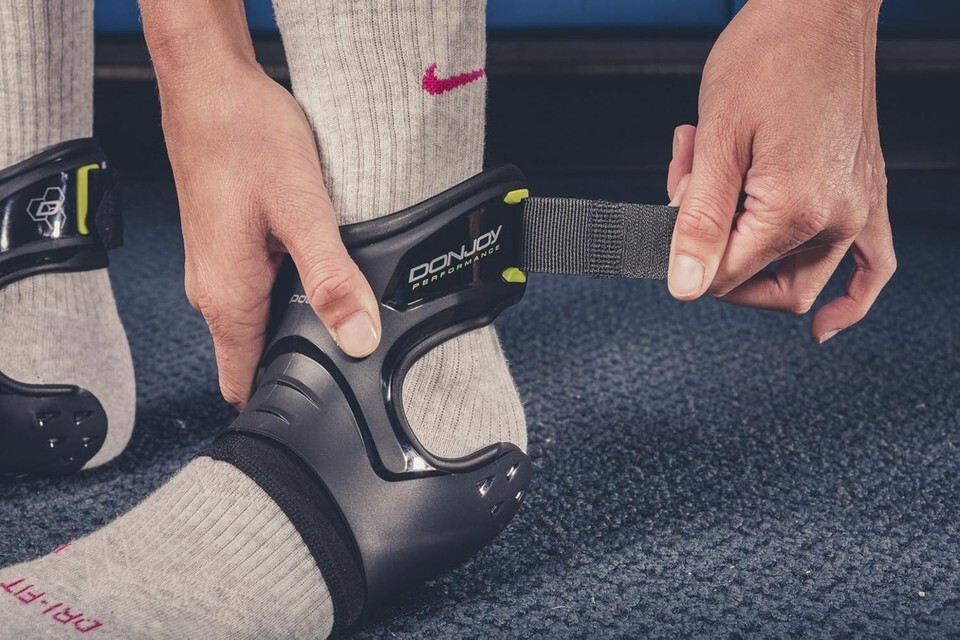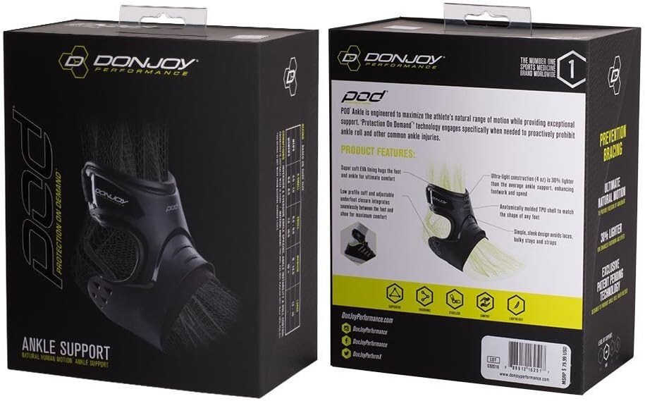 Description : The DonJoy Performance POD Ankle Support Brace is engineered to maximize the athlete?s natural range of motion while providing exceptional support. "Protection On Demand" technology engages specifically when needed to proactively prohibit ankle roll and other common ankle injuries.