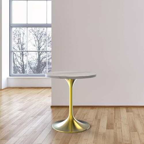 LeisureMod Verve Round Dining Table, Mid-Century Modern Dining Table with White