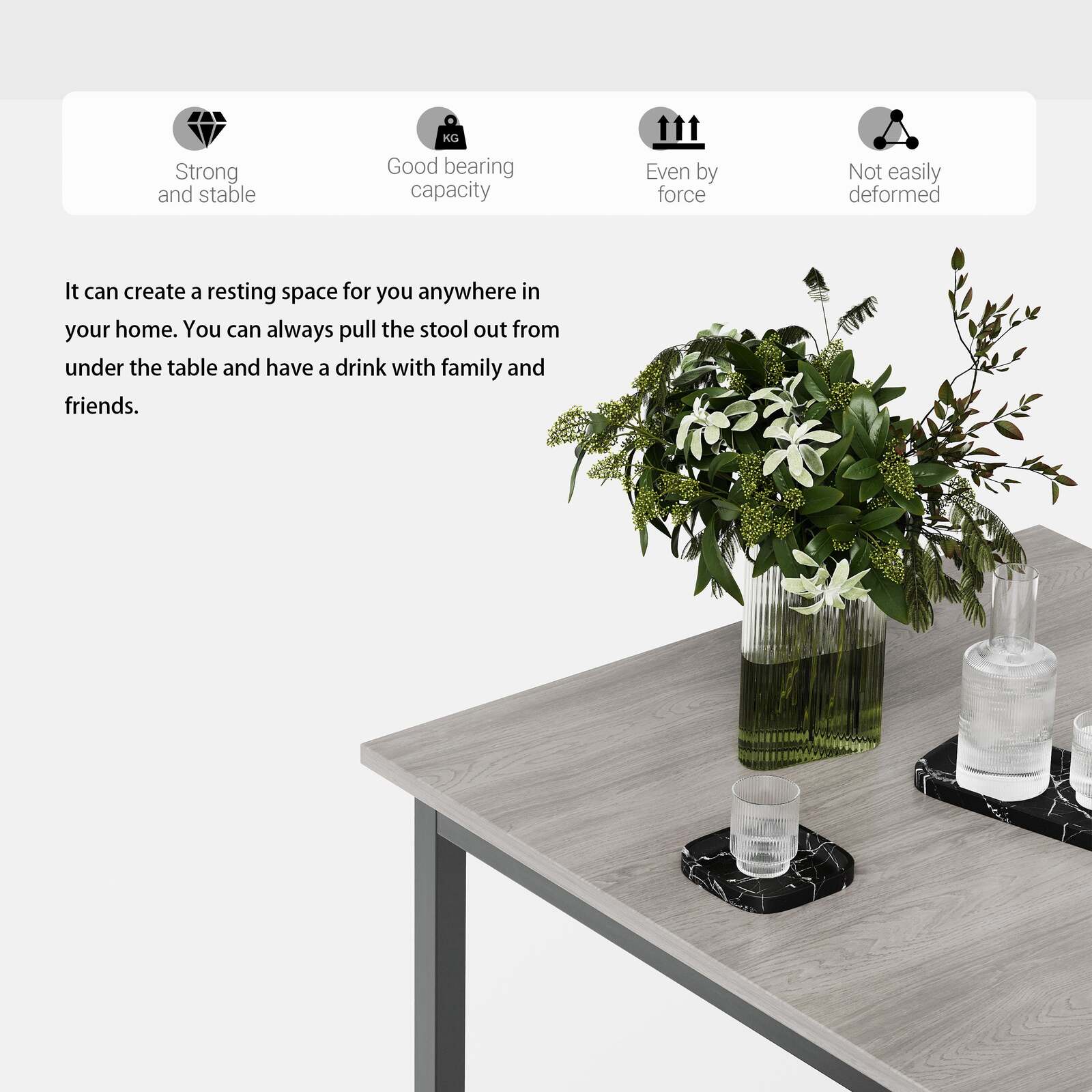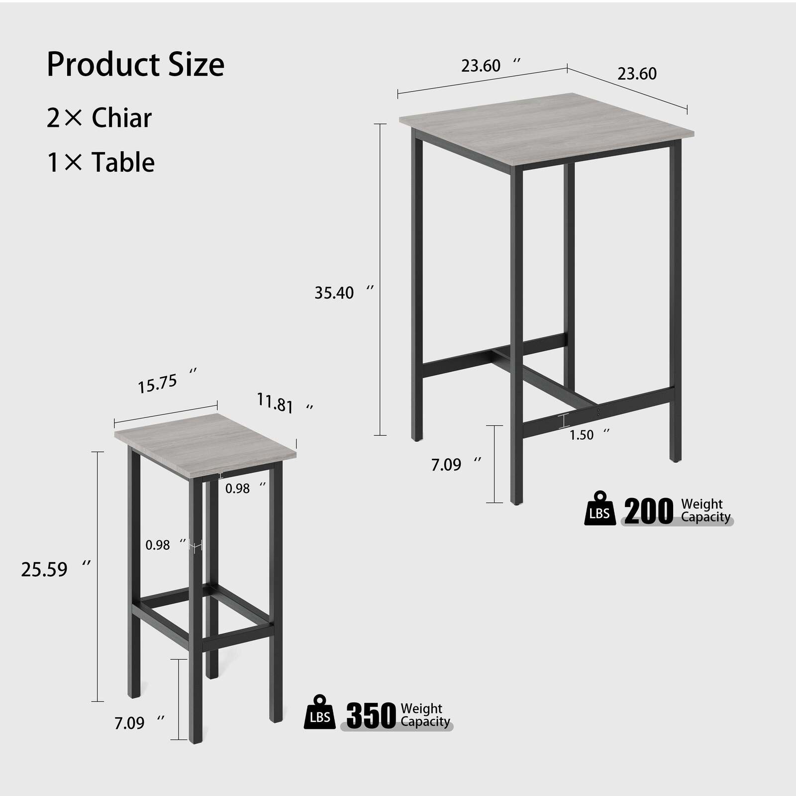 Grey Bar Table Set with 2 Stools - Compact, Modern Dining