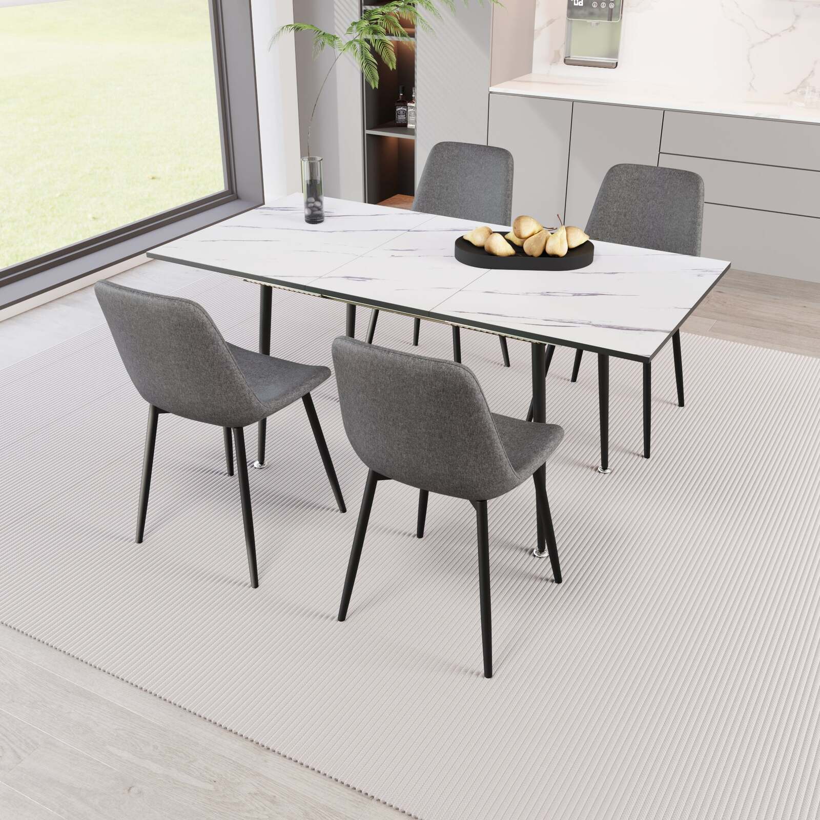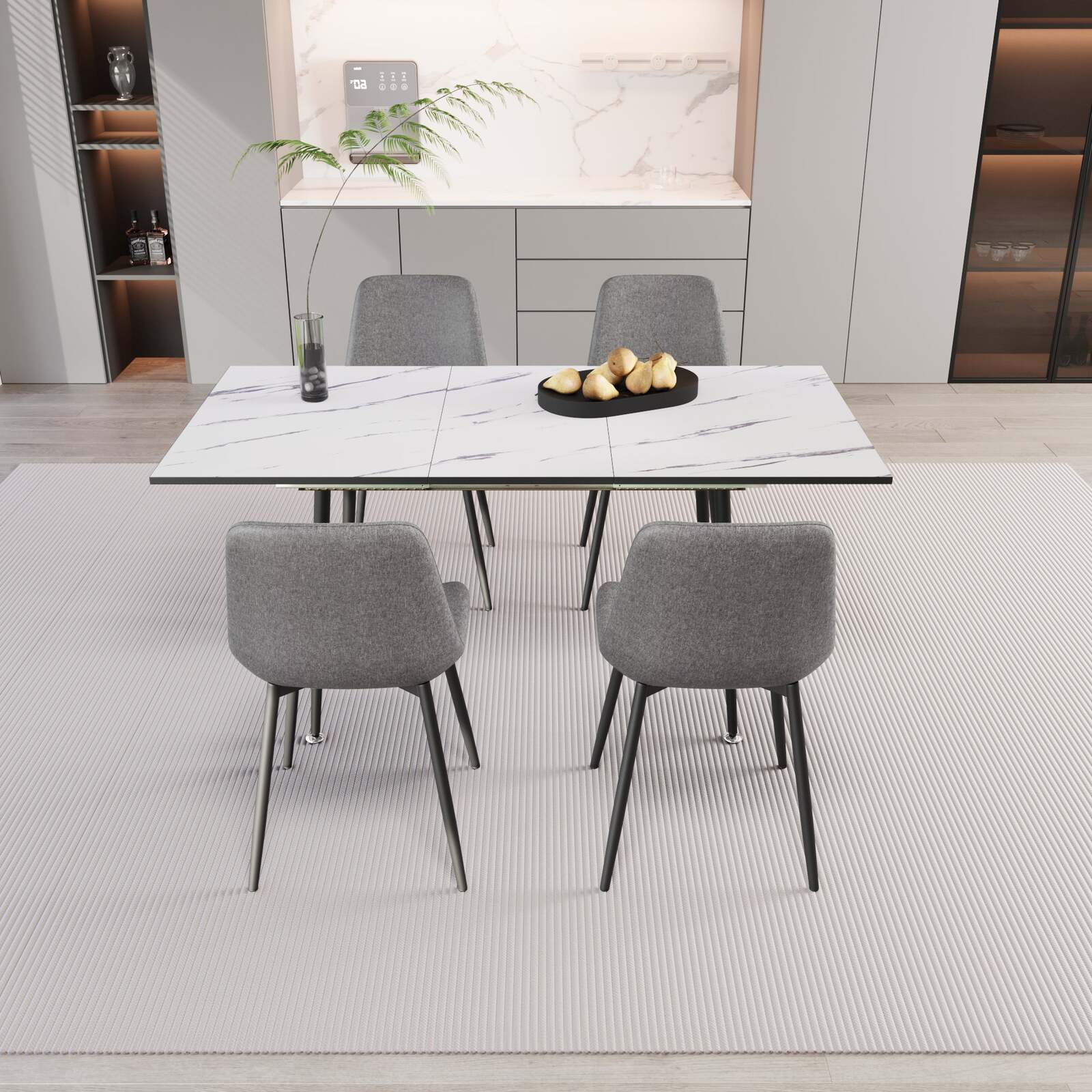 3.Easy to clean: A modern dining table with 2-6 seats, made of unique and high-quality materials that prevent stains from penetrating. Simply wipe with a cleaning cloth.And it also has excellent durability, stability, and strength.