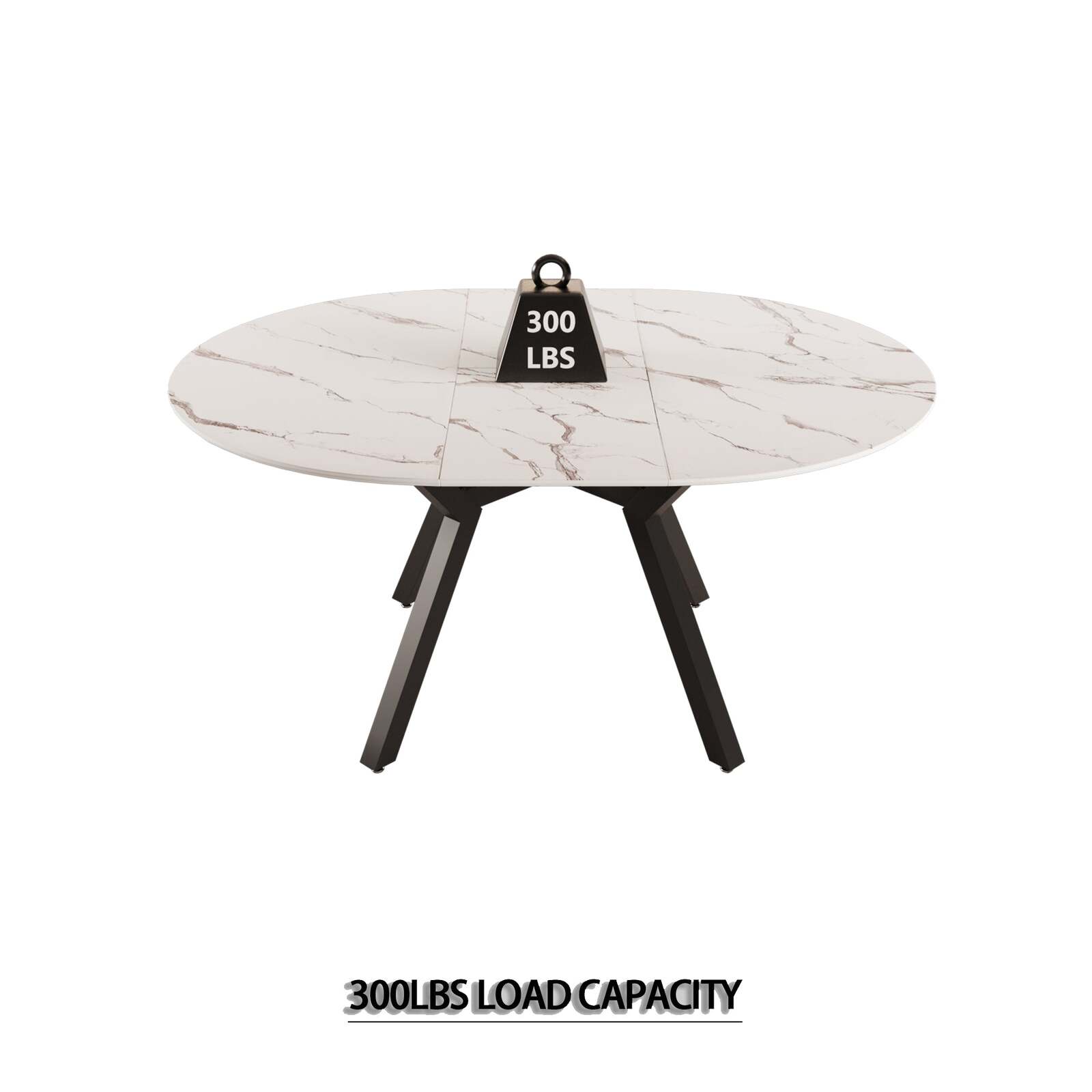 3.High quality MDF round table: This round table is made of high-quality MDF material and matte black metal, which is more sturdy and durable. The beautiful white veneer and black metal legs also make the round table look chic and fashionable.