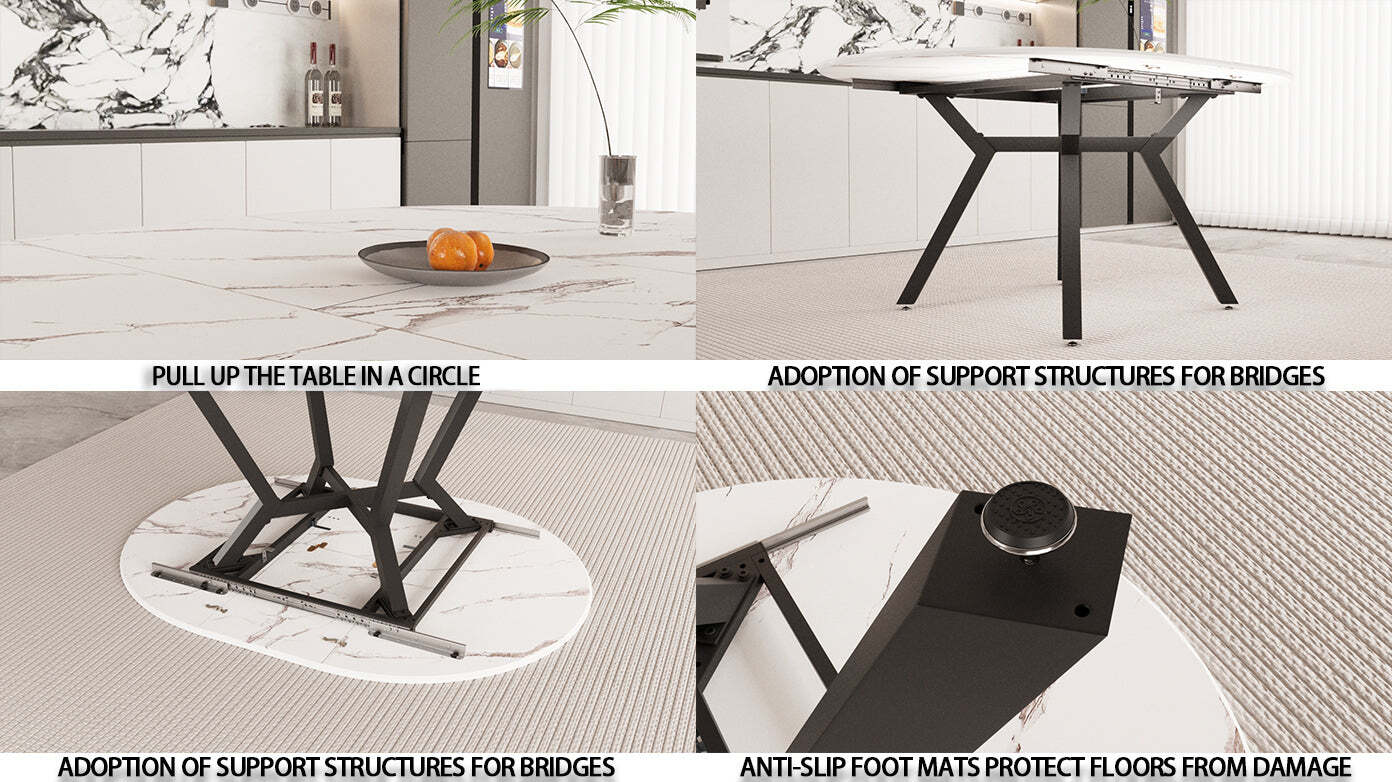 5.Stretchable Smooth Dining Table: The table can be extended up to 63 inches, providing you and your family with a larger dining space. The tabletop is smooth, not easily dirty, odorless, scratch resistant, and has a longer lifespan.
