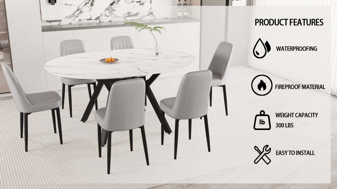 7.Multi functional 7-piece table and chair set: The seats in the set are made of comfortable PU material and covered with high-quality synthetic leather interior. It provides more comfort for you or your friends while dining. In addition, these chairs have a wide range of uses. In addition to the dining room, these chairs can also serve as an elegant addition to the office, living room, or study, making them a versatile and stylish choice.