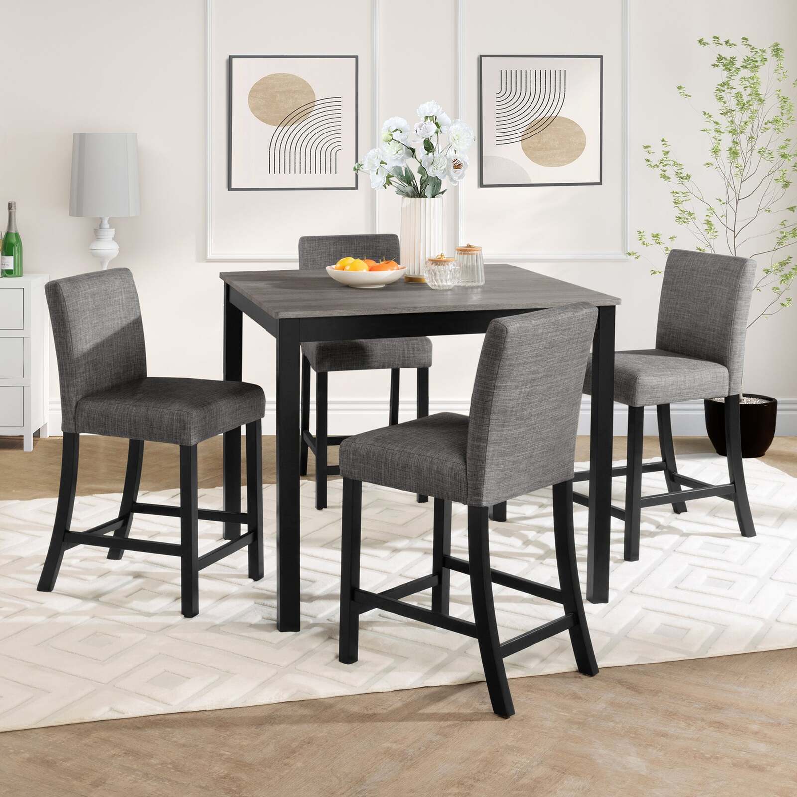 Modern 5-Piece Counter Height Dining Set: Light Grey & Black Table