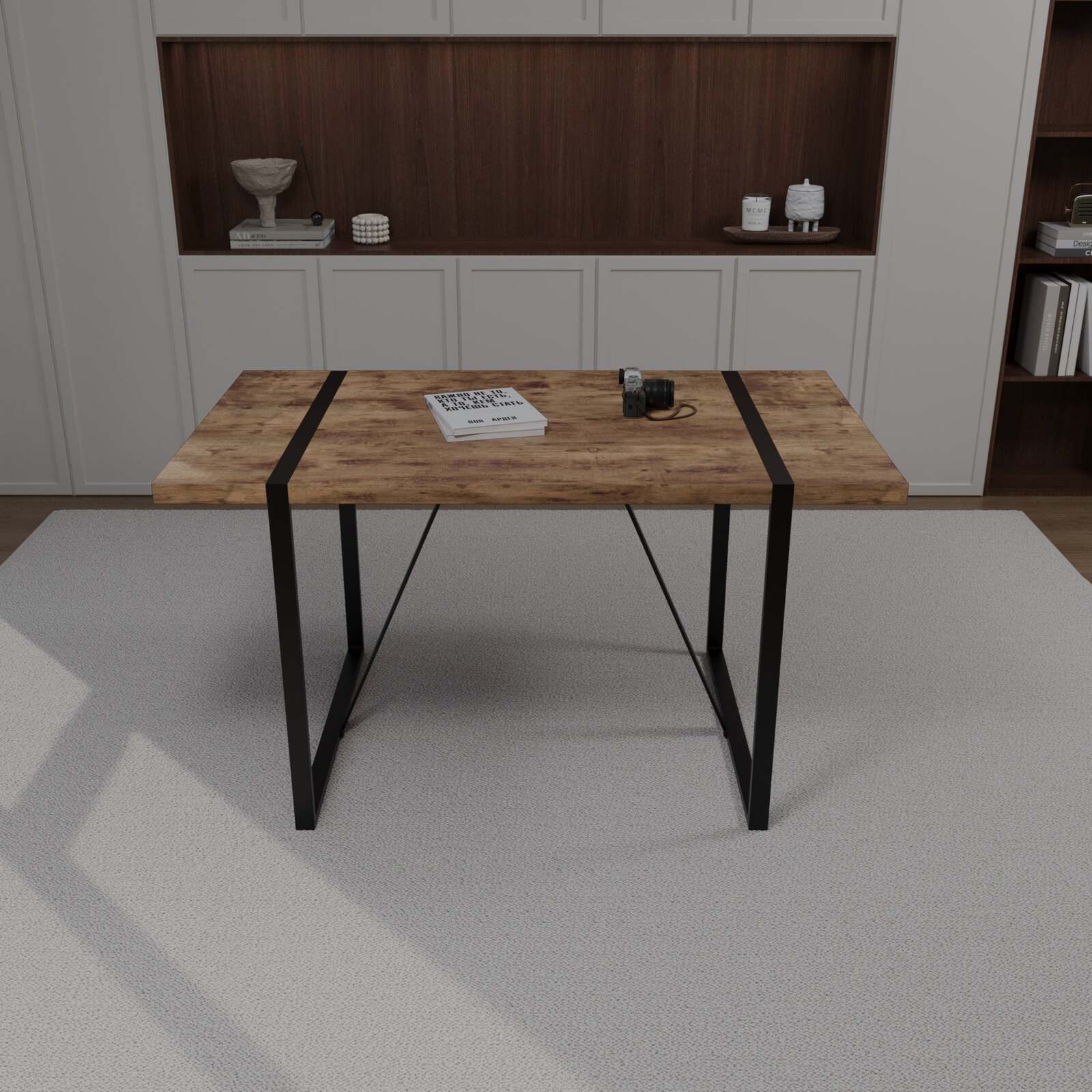 5.Modern industrial style dining table: The metal frame of the dining table provides additional stability, ensuring that the tabletop remains level and stable even during busy dining processes. The metal frame also adds a touch of modernity and elegance to the overall appearance of the table.