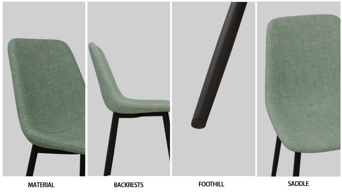 6.4 sets of black metal leg dining chairs: These medieval modern suede dining chairs feature matte black metal legs, adding a sense of delicacy to the restaurant while also being sturdy and durable. Modern design also makes these dining chairs easier to match with the kitchen or living room.