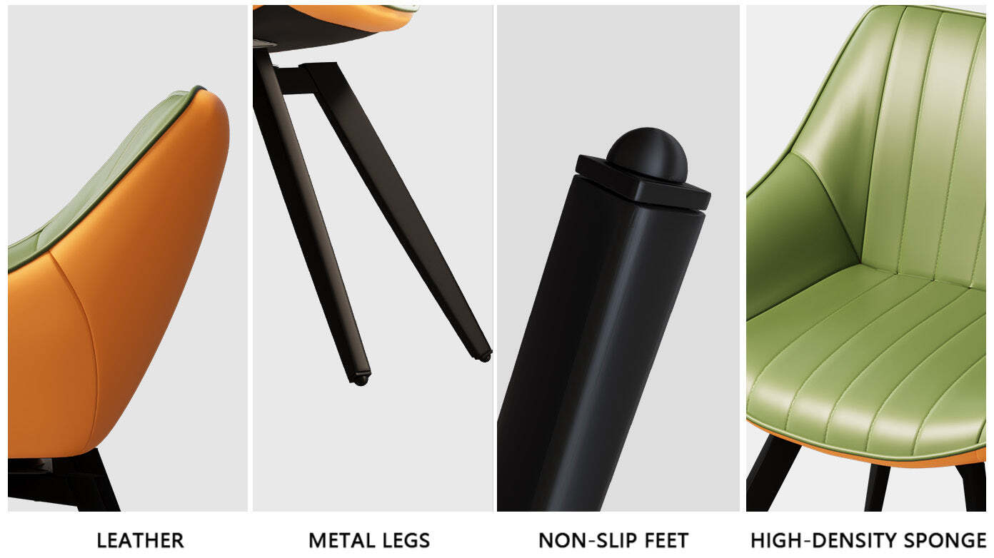7.High quality materials: The backrest and seat surface of our modern dining chair are filled with high-quality PU leather, wrapped in thick sponge, and the surface is waterproof and wear-resistant. It not only provides excellent back support, but also brings a super soft touch, making it an excellent companion for long-term dining.