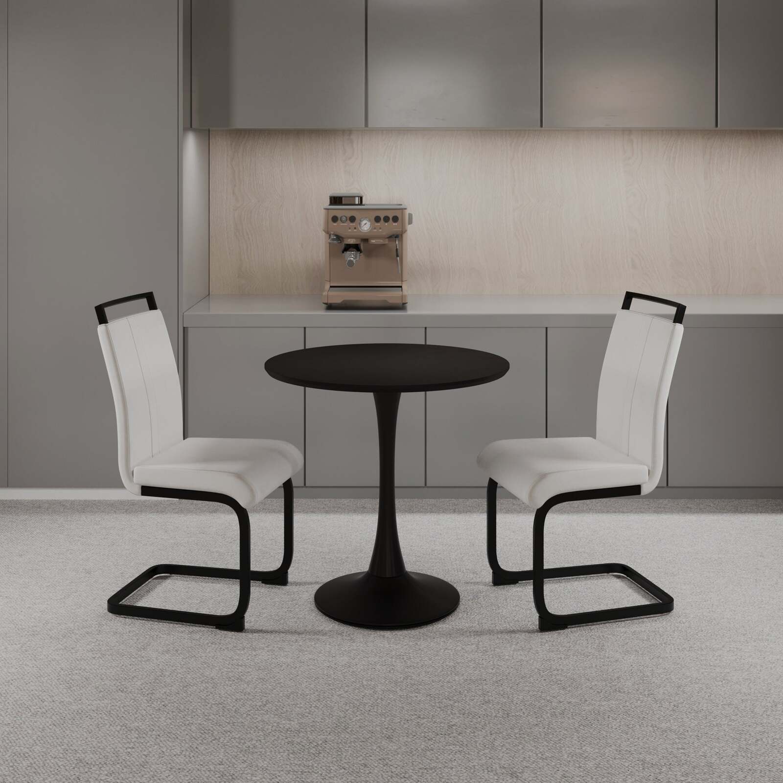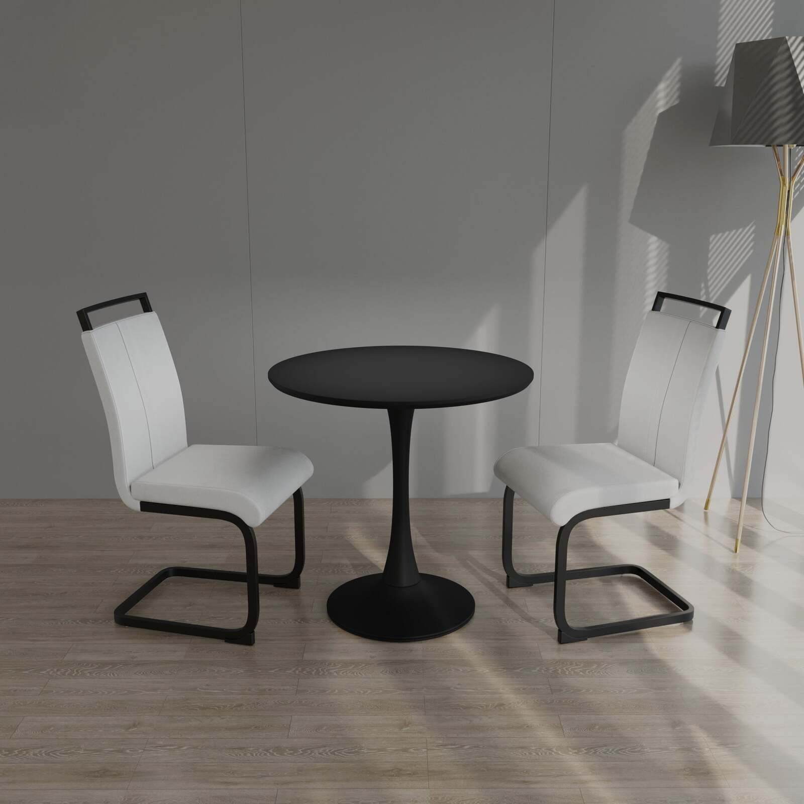 8?dining table set for 2?Enjoy comfort during meals with the two included white PU dining chairs, featuring plush upholstery and ergonomic design.