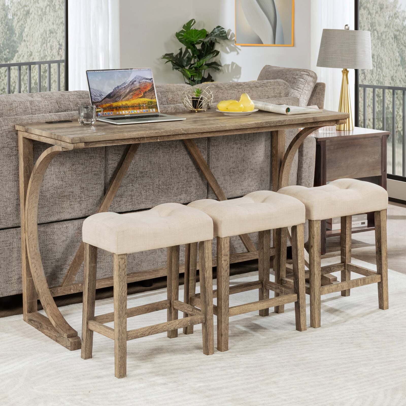 Bar Table with USB Port: The bar table top is equipped with a power strip, USB and Type-C, which is one of the bar's outstanding features. You can easily connect electronic devices such as laptops, chargers or other accessories. This feature adds undeniable practicality and convenience to work and leisure activities