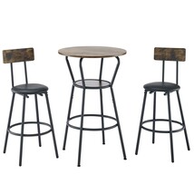 Rustic Brown Round Bar Table Set with Upholstered Back Stools