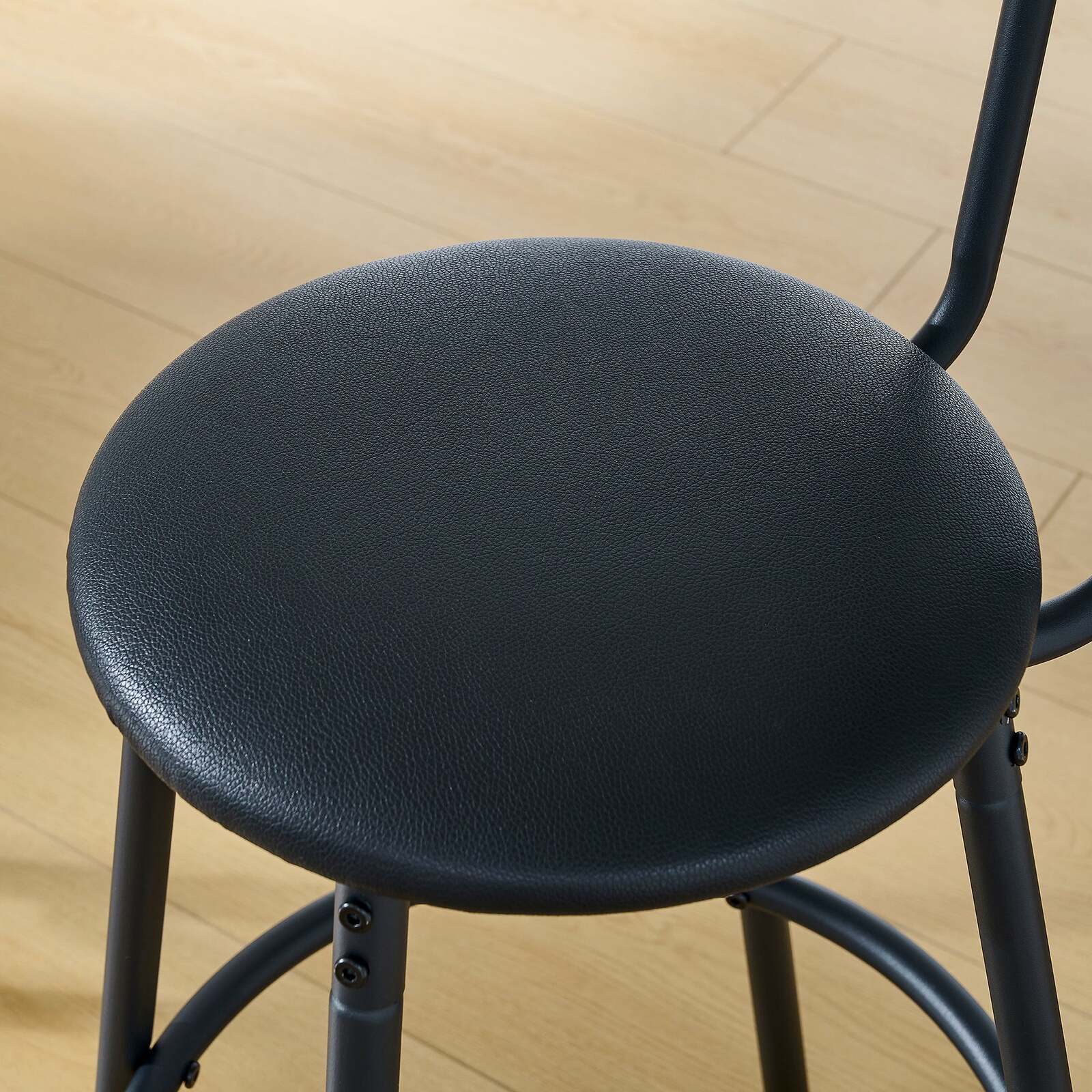 The bar and chairs are made of strong iron frame and high quality particle board.