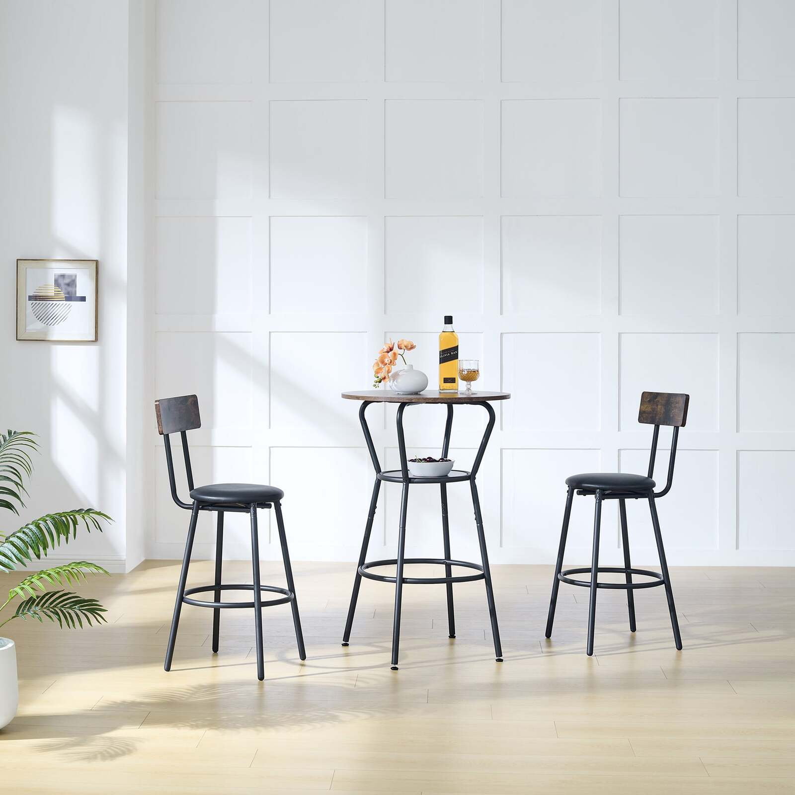 This bar table and chairs, you can put it anywhere in your home and have a drink with good friends or relax with a drink alone.