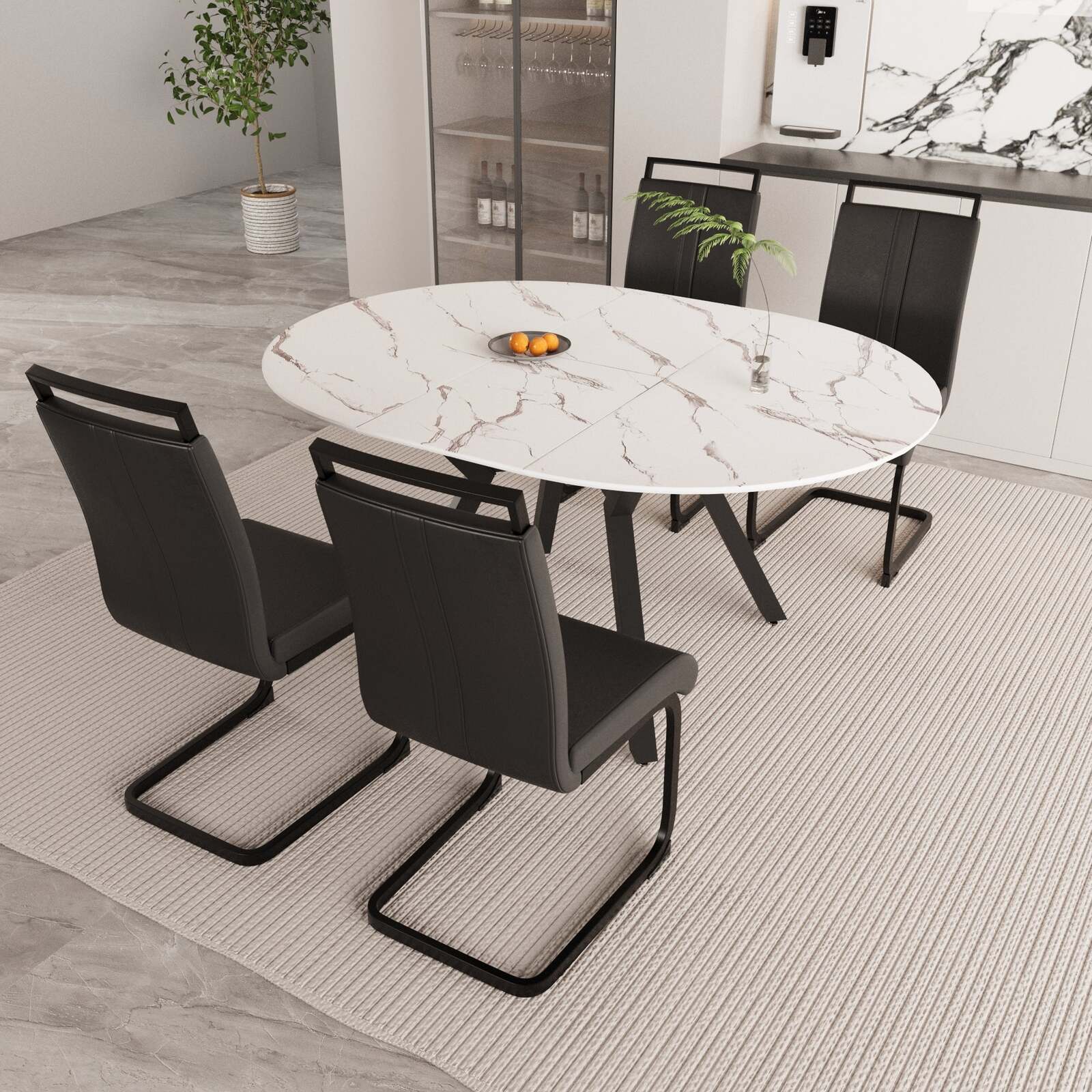 2.Stretchable Smooth Dining Table: The table can be extended up to 63 inches, providing you and your family with a larger dining space. The tabletop is smooth, not easily dirty, odorless, scratch resistant, and has a longer lifespan.