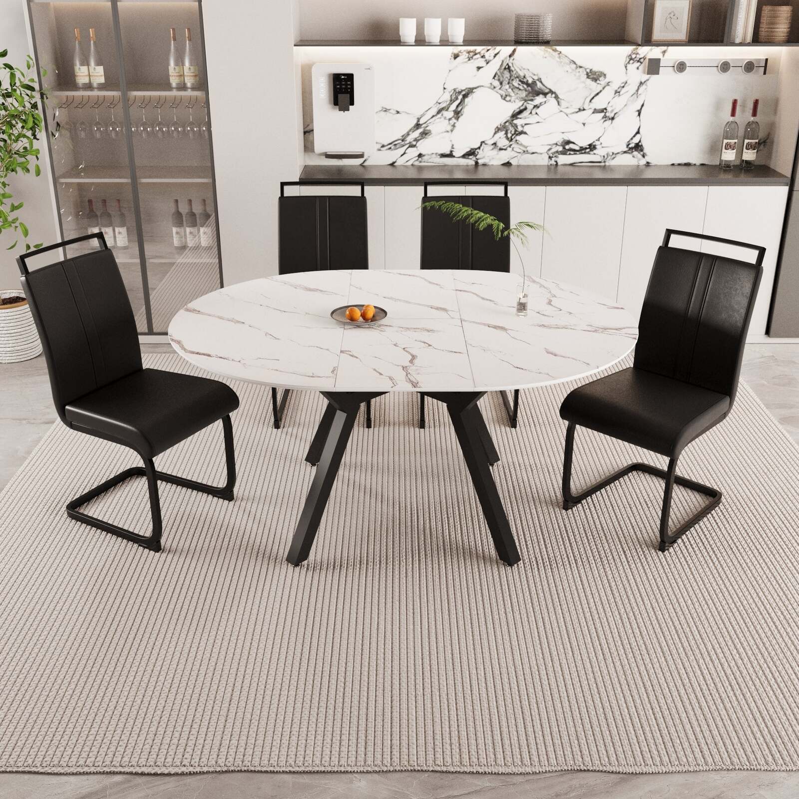 Expandable Circular Dining Table Set (4-6) + 4 C-Chairs