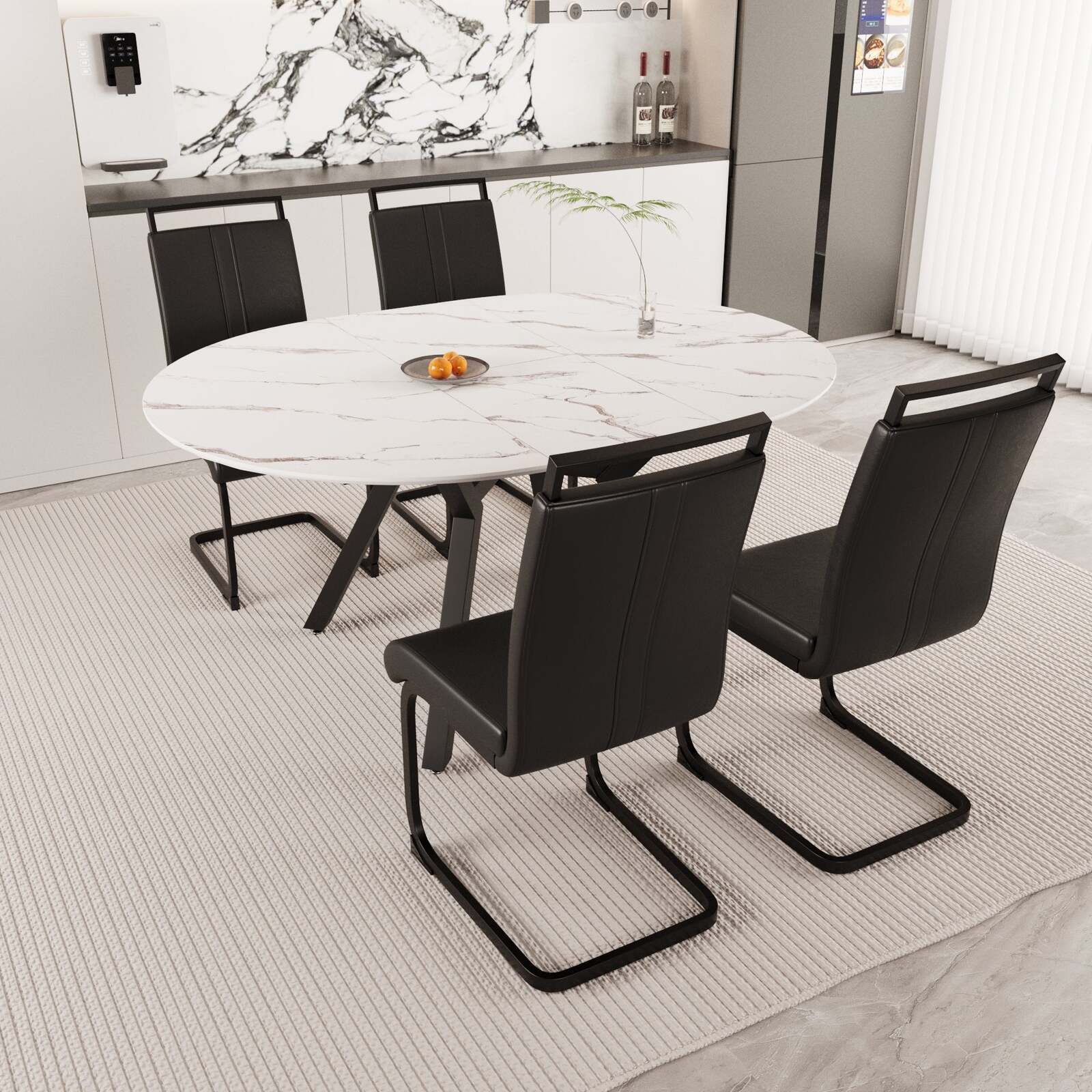 8.Multi functional 5-piece set of tables and chairs: The seats in the set are made of comfortable leather material - covered with high-quality premium synthetic leather interior. It provides more comfort for you or your friends while dining. Moreover, the chairs have a wide range of uses. In addition to dining rooms, these chairs can also serve as elegant supplements to offices, living rooms, or study rooms, making them a versatile and stylish choice.