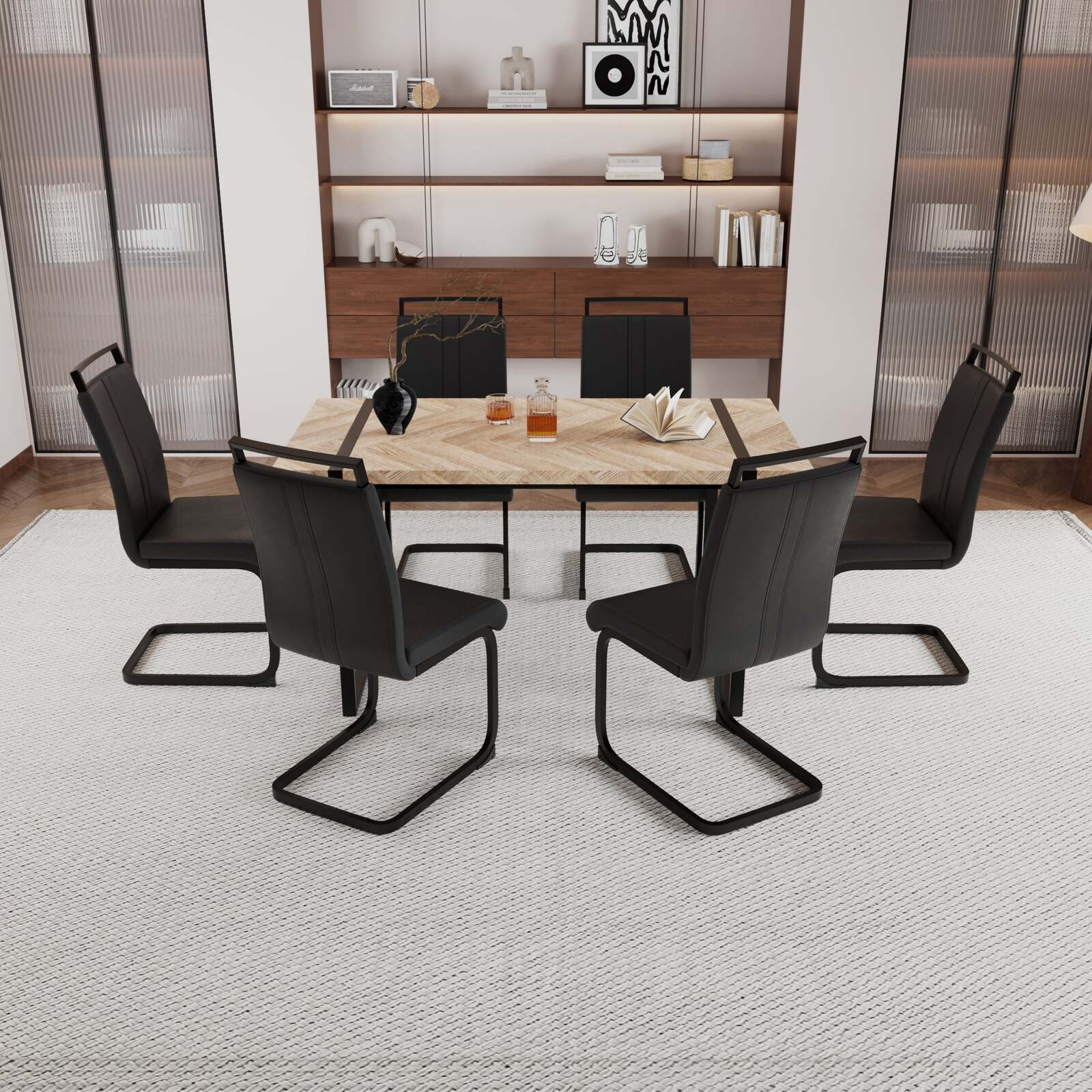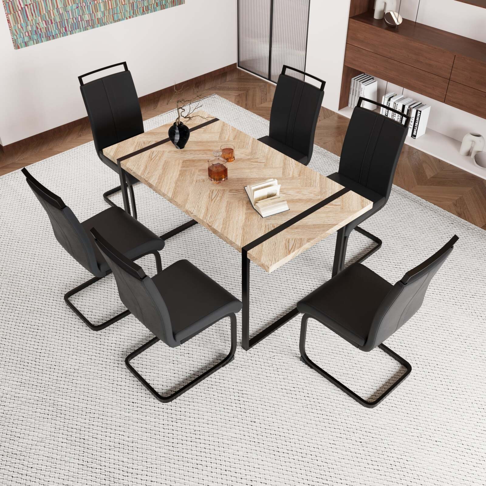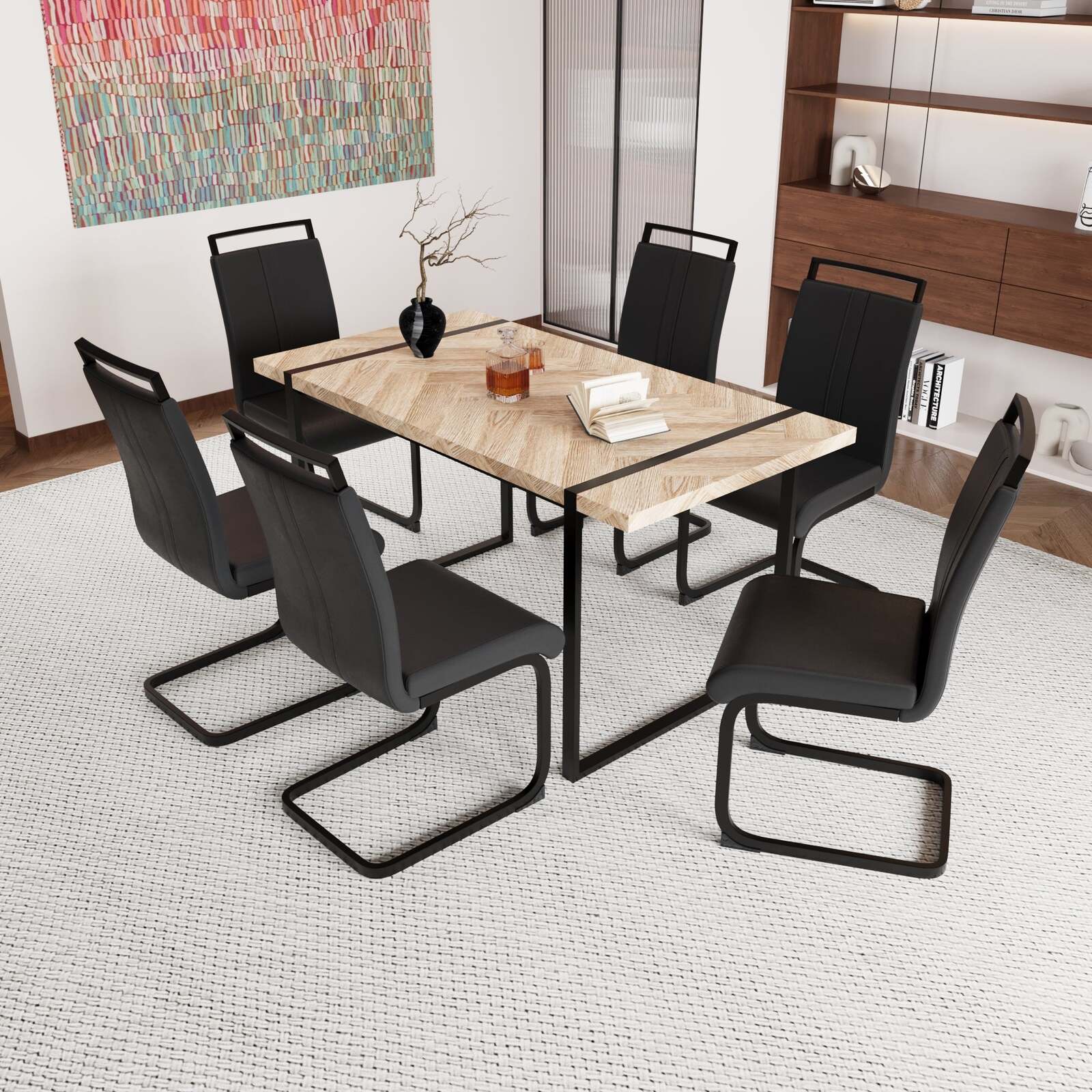 Rural Industrial 59" Rectangular MDF Light Wood Dining Table & 6 PU Chairs