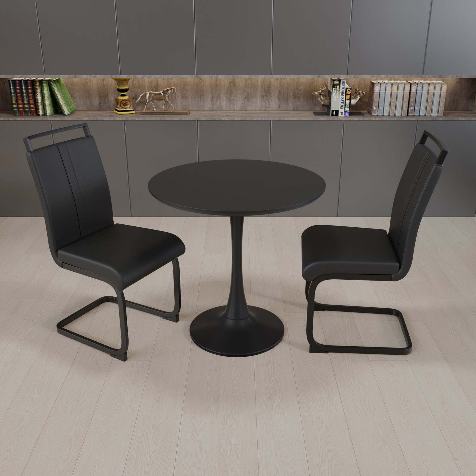 8?dining table set for 2?Enjoy comfort during meals with the two included black PU dining chairs, featuring plush upholstery and ergonomic design.