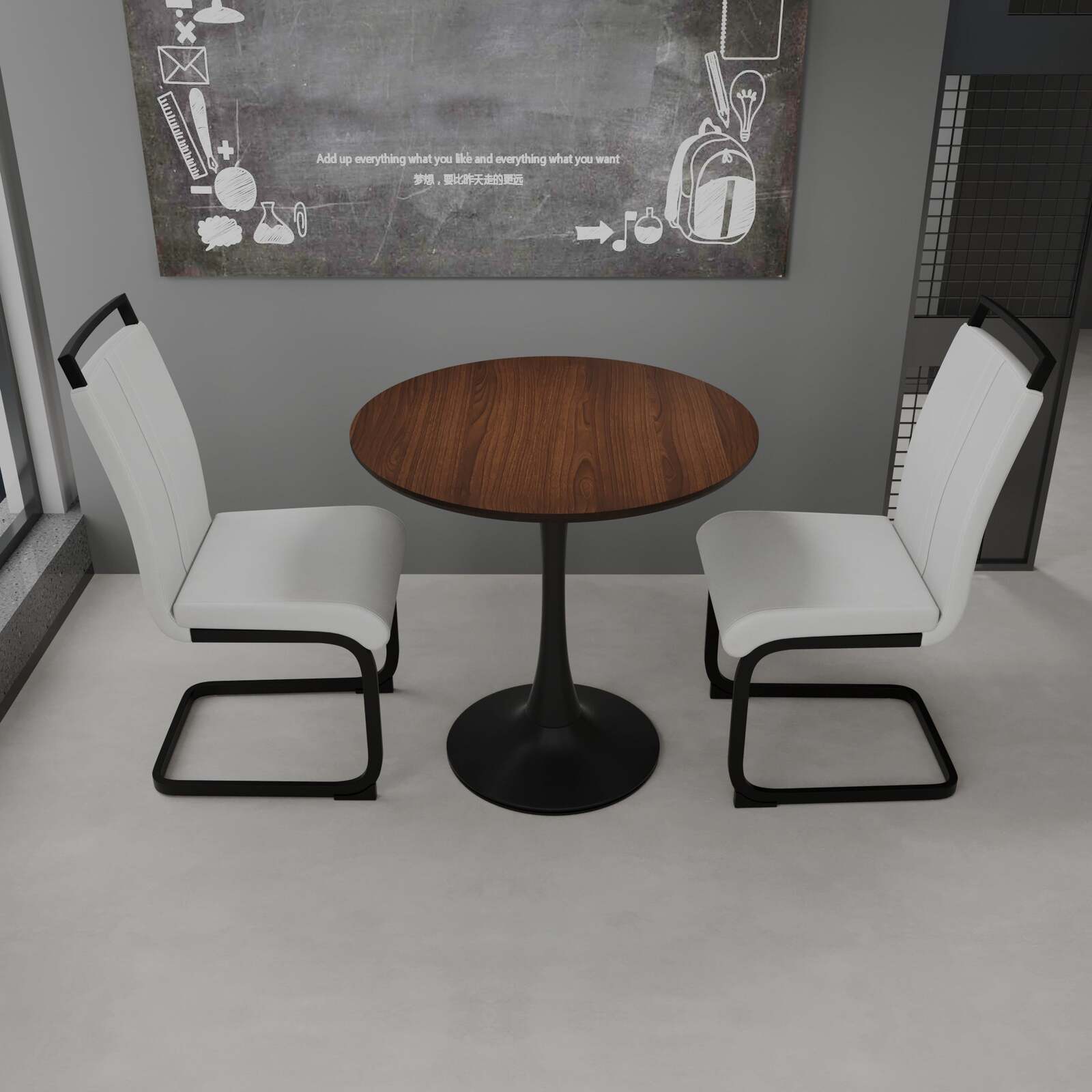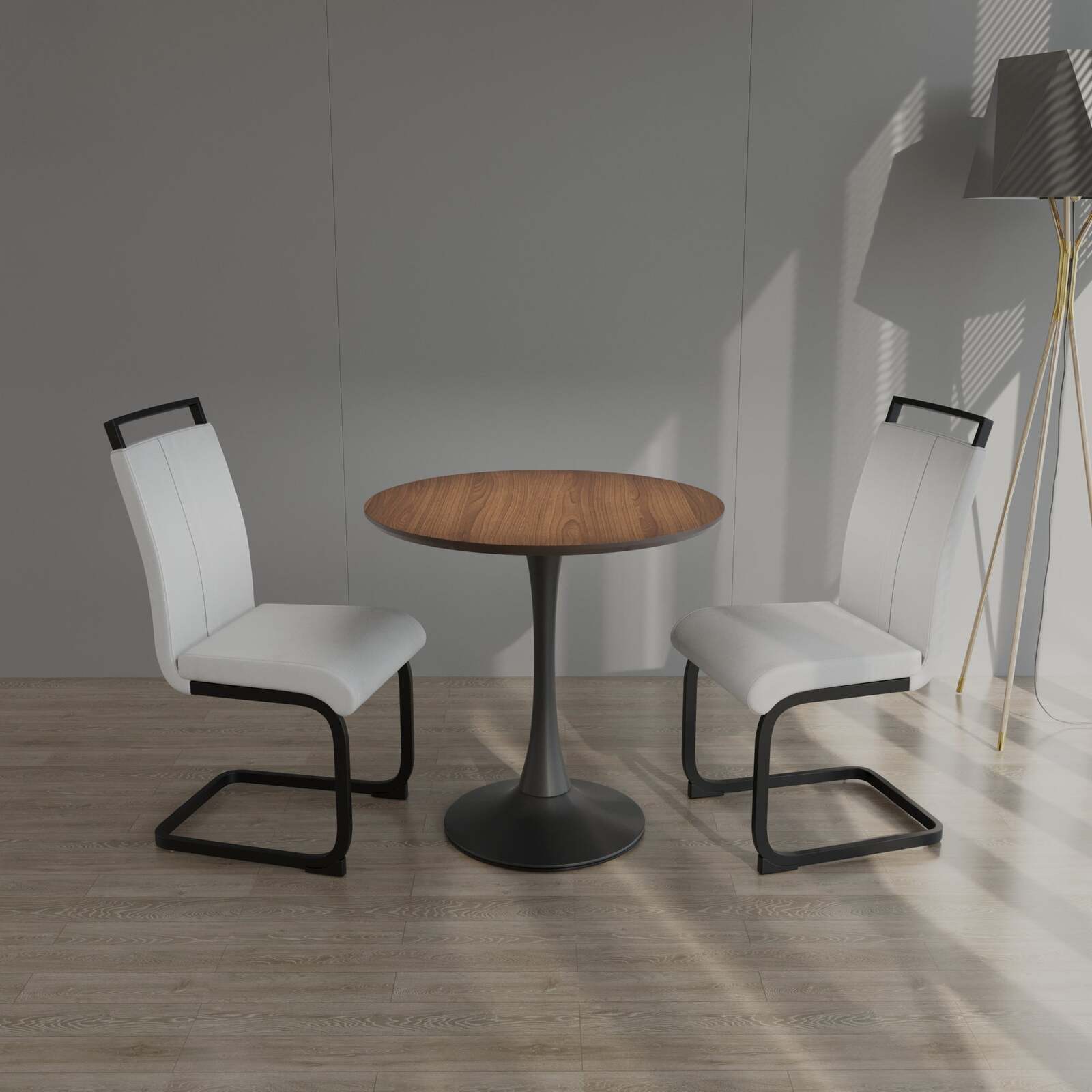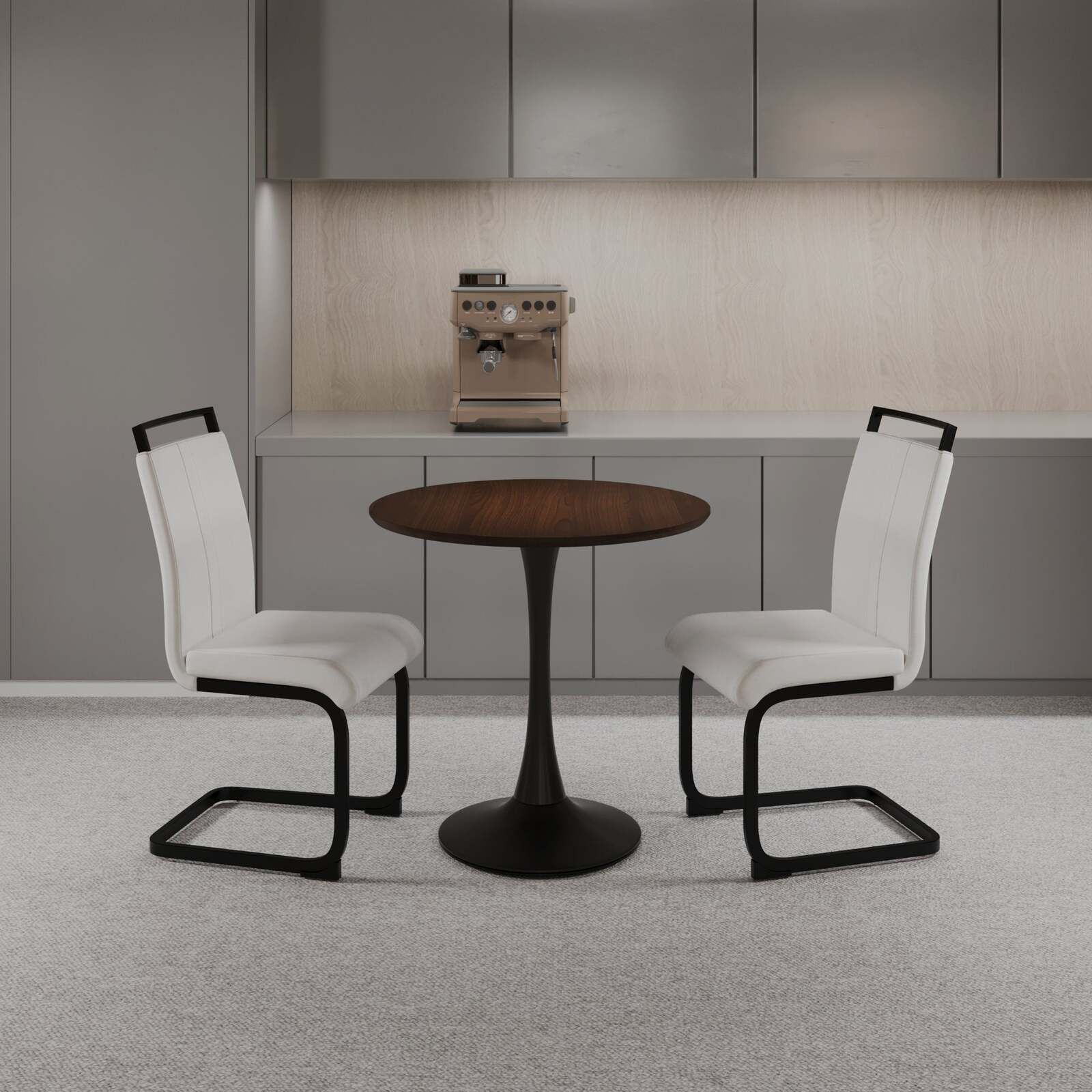 Walnut Tulip Dining Table & 2 White PU Chairs Set - 31.5" Round Kitchen