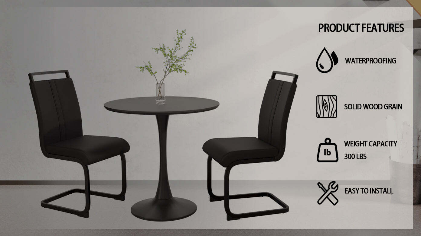 3.?round MDF dining table Set 2?Add a touch of sophistication to your home with this stylish tulip table featuring a timeless black finish and black metal Support and base