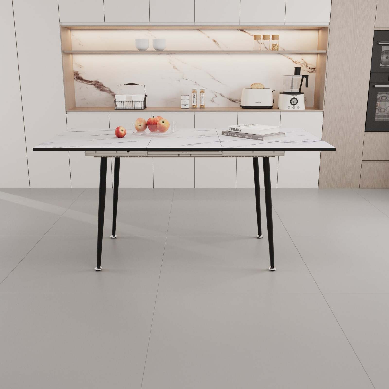 5.Simple and expandable dining table: This dining table can expand the desktop, creating a wider dining space and is easy to push and pull. 2-4 people will feel comfortable using it and there is ample space. When you have friends coming over, it can also accommodate 6 people. You can push the extension inward when you don't need it, so it saves a lot of space.
