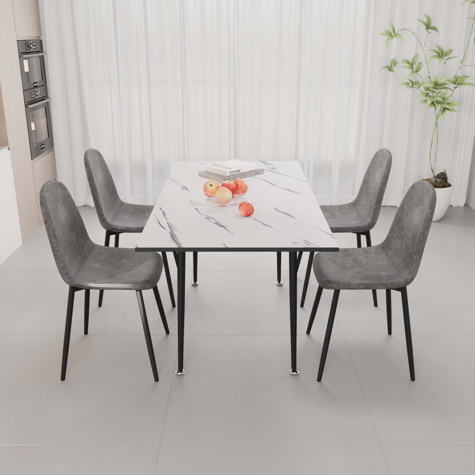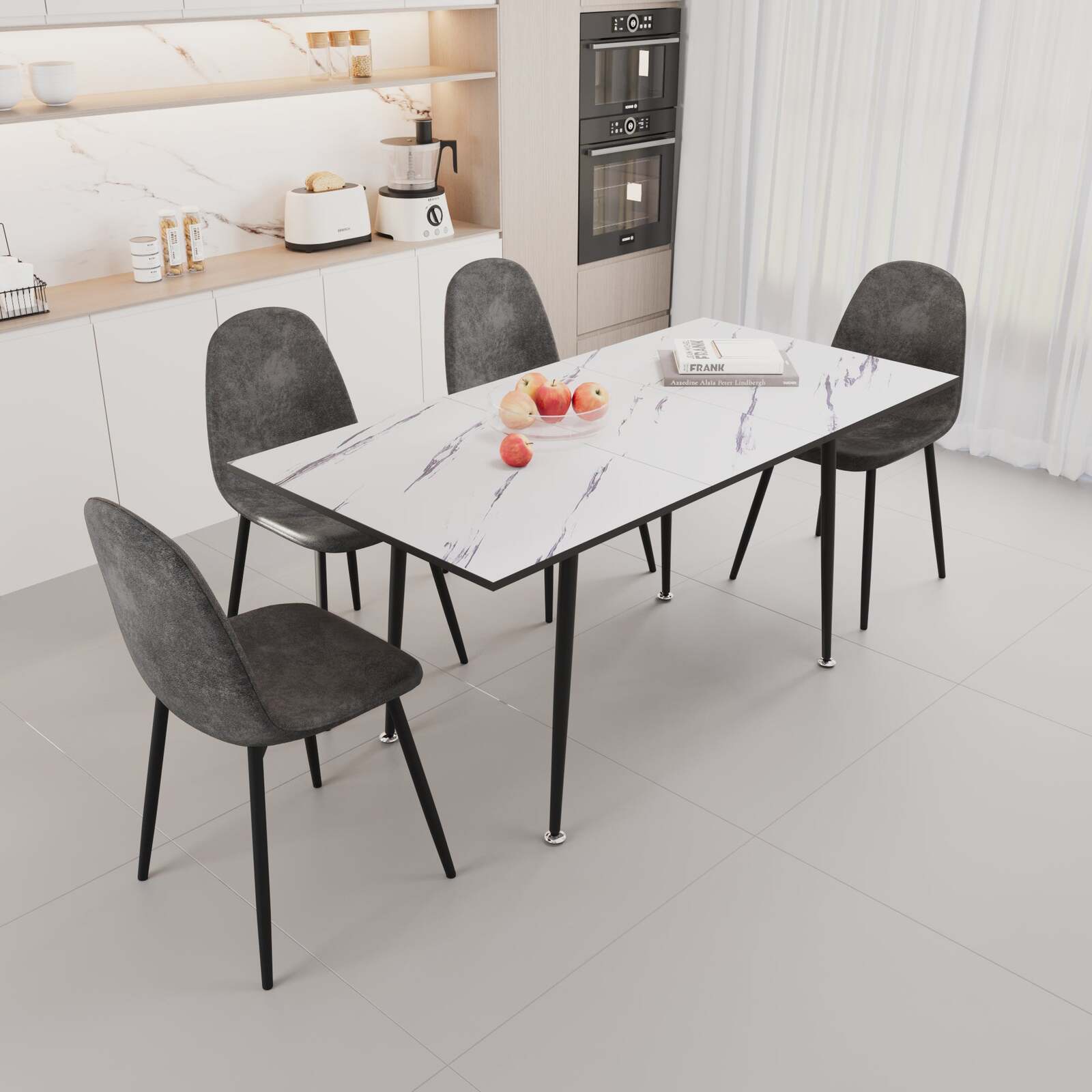 Modern Extendable Dining Table & 4 Suede Chairs White/Grey Set