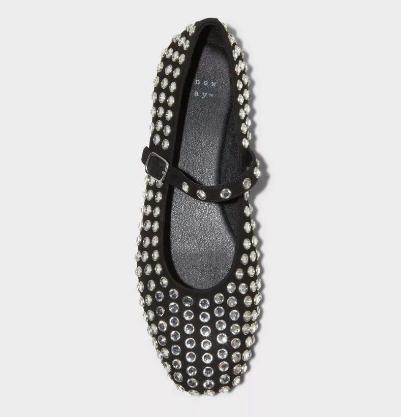 Ces ballerines Issa Rhinestone Mary Jane de A New Day vous offrent le melange parfait de brillance et de confort. Ces ballerines noires sont parsemees de strass scintillants pour un look remarquable avec n'importe quelle tenue. Ils comprennent une silhouette ronde a bout ferme et disposent d'une sangle de cou-de-pied scintillante assortie avec une boucle pour un ajustement reglable.