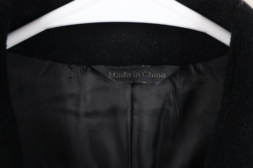 Blemishes front, back, arms. Collar, cuffs, inner lining discolored. Loose threads buttons. Color faded. Pilling. 21 inches shoulder to shoulder seam. 25.5 inches shoulder seam to cuff