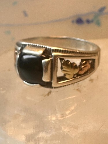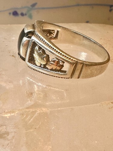 Black Hills Gold ring size 9.25 onyx sterling silver leaves band women men
