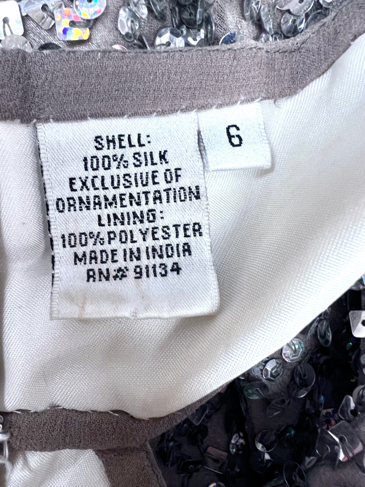 Fits the modern size 6 mannequin perfectly. In excellent condition with the only flaw being a little discoloration inside the neckline.