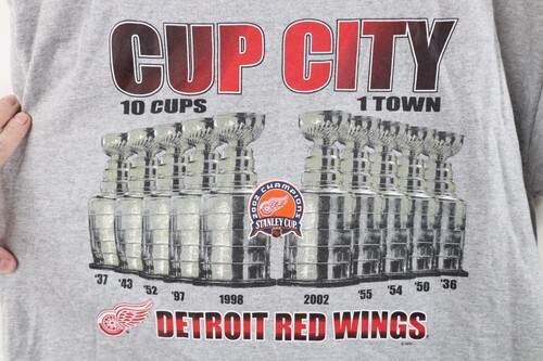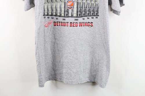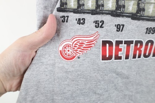 Vintage Mens Large 2002 Stanley Cup Champs Detroit Red Wings Hockey T-Shirt Gray