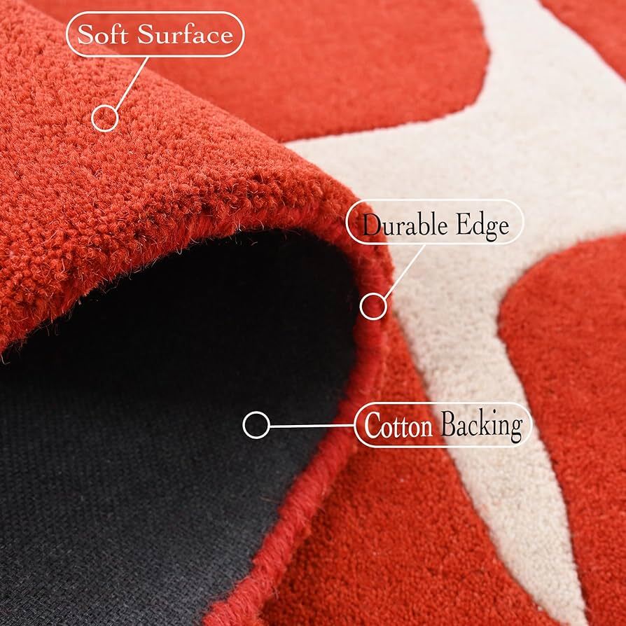 Hand-Tufted Red & Cream Wool Rug – 10x14 - 12x15 - 9x12 - 8x10