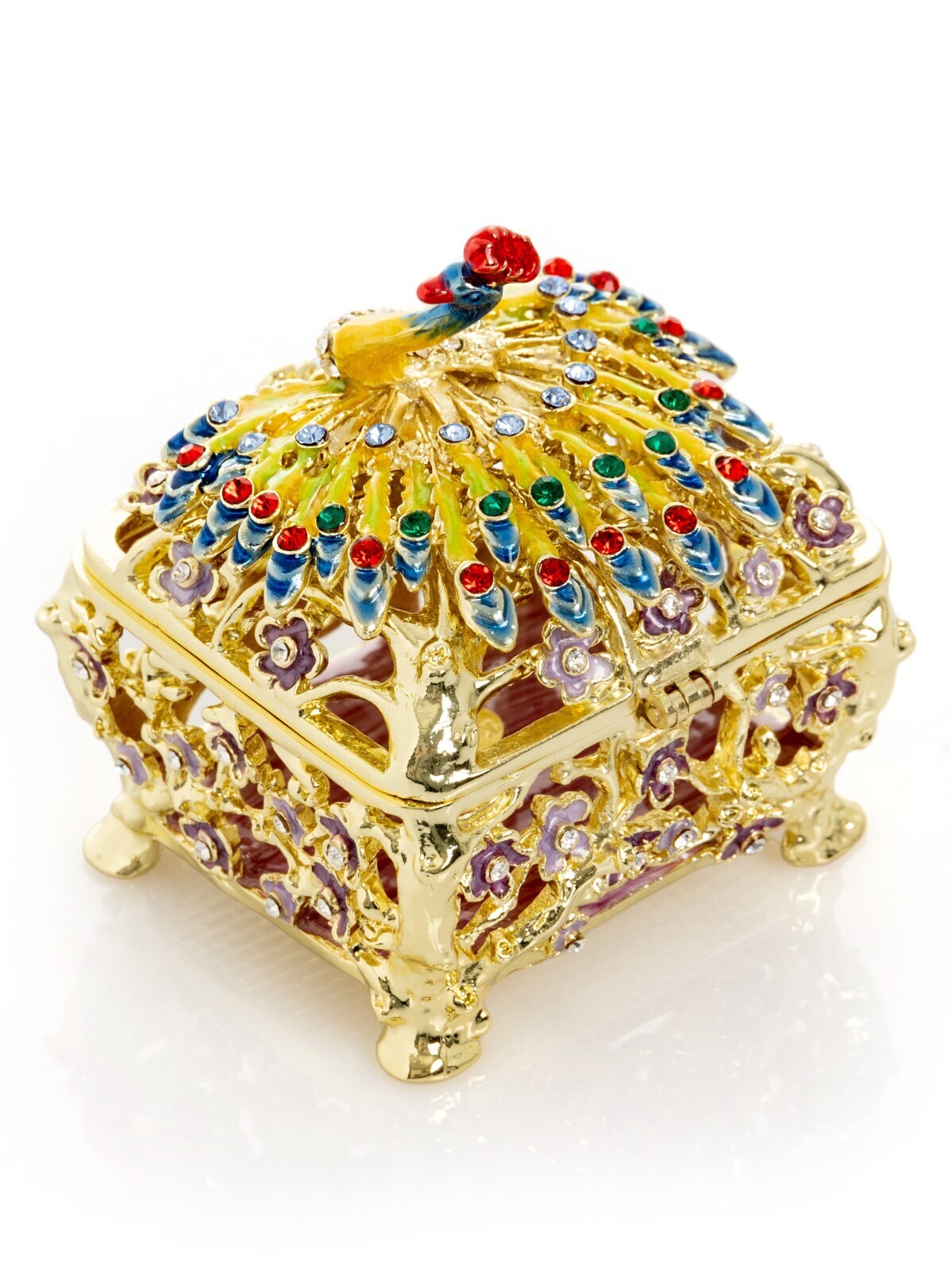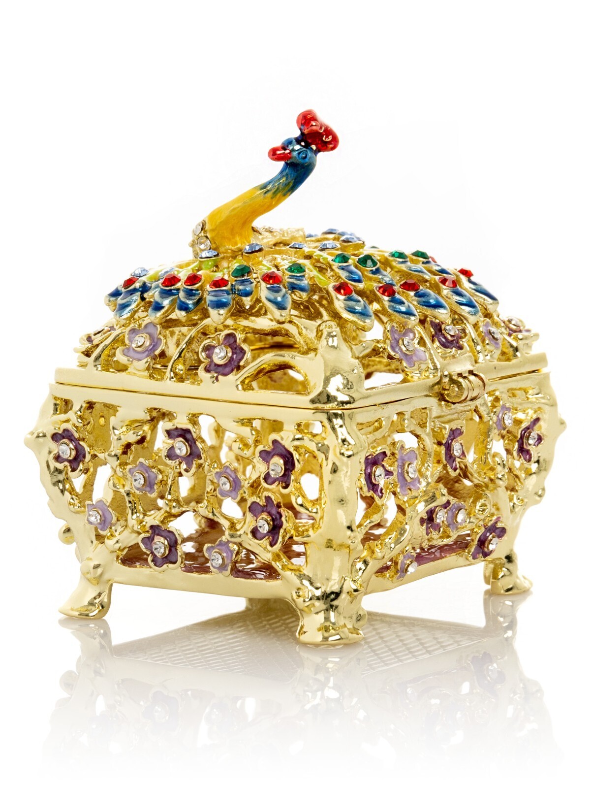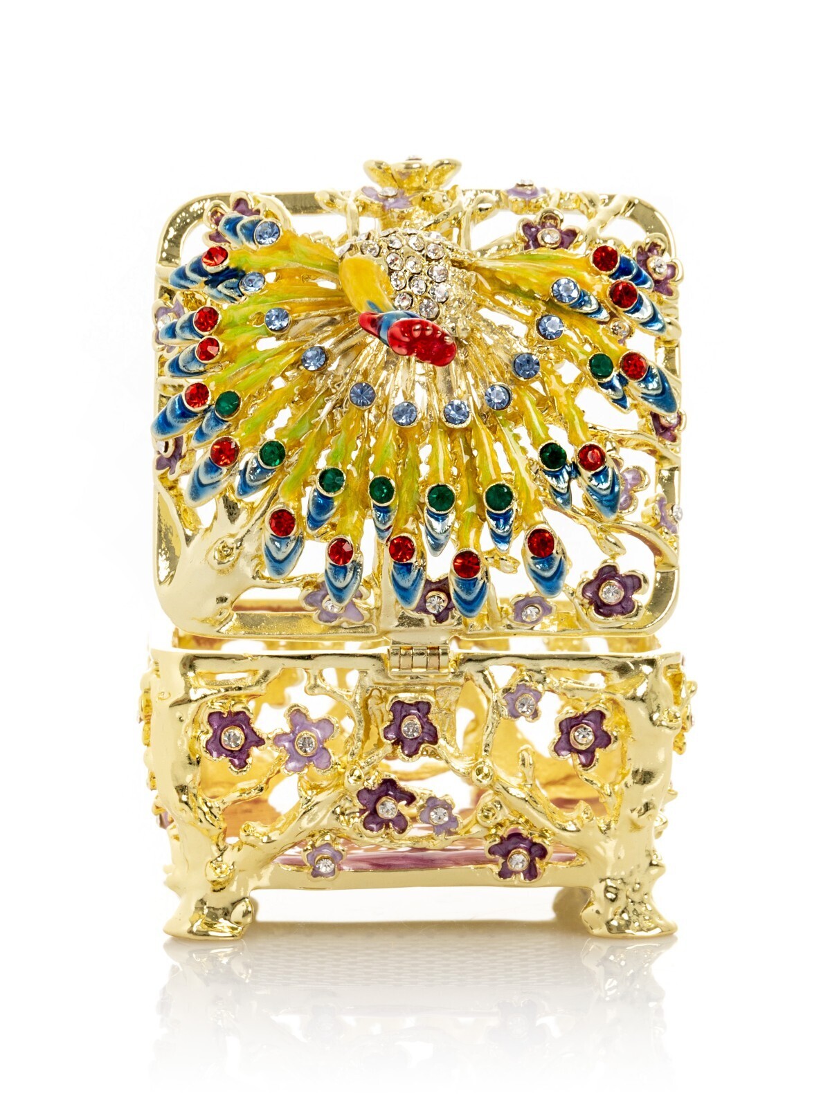 Keren Kopal Hand made Peacock Trinket box Decorated with Austrian Crystals