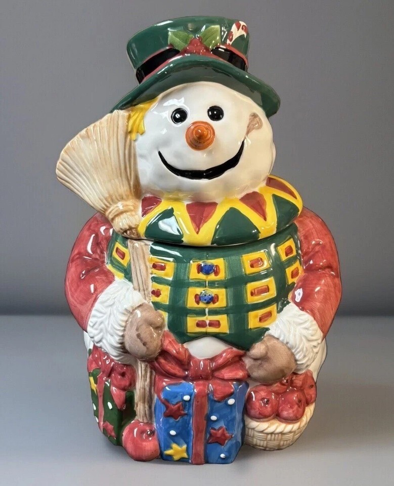 Vintage 11” Ceramic CLOWN Snowman Christmas Cookie Jar Holiday,World Bazaars Inc