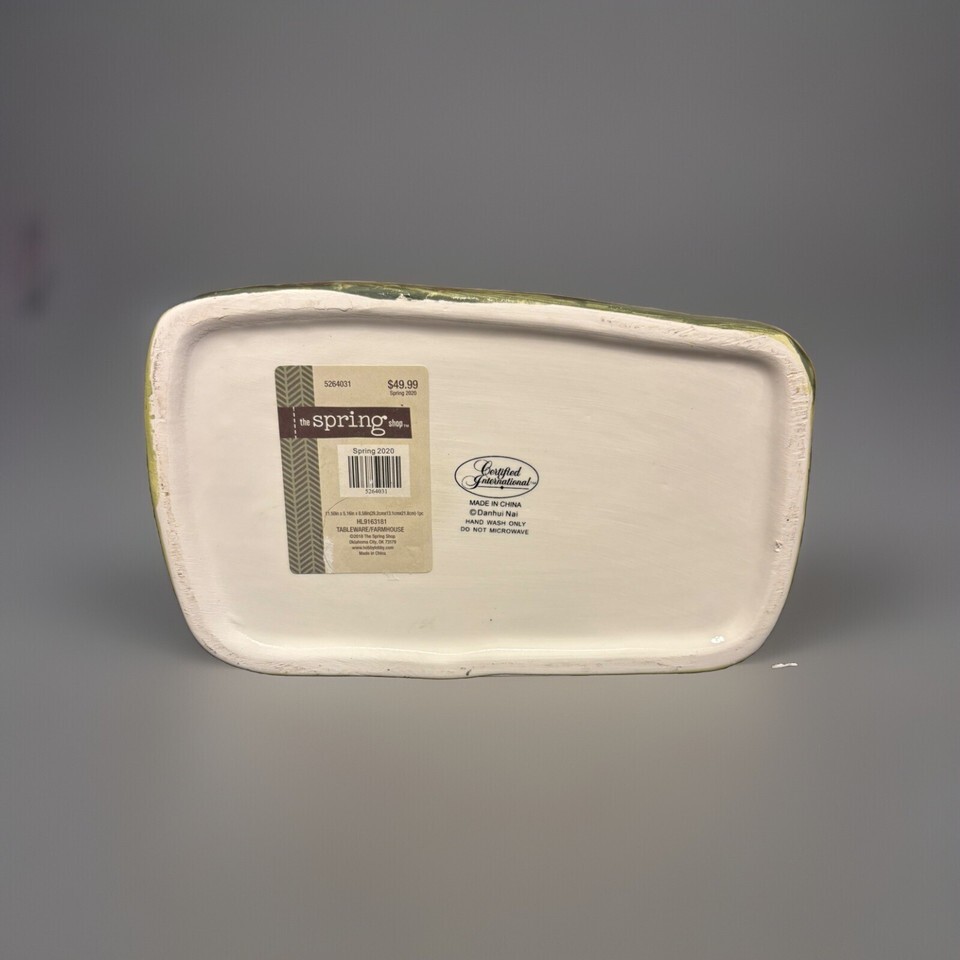 The Certified International Farmhouse 3-D Cow Canister Jar is a charming and functional piece for kitchen storage and organization. Standing at 9 inches tall with a white farmhouse style design, this canister jar features a unique cow shape that adds a playful touch to any kitchen decor. With a length of 12 inches and a width of 4 inches, this canister jar is both practical and visually appealing, making it a great addition to any farmhouse-inspired kitchen.