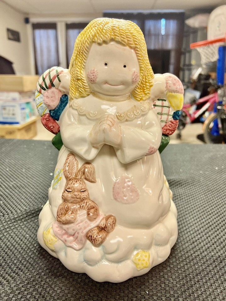 Too Cute Vintage Cosmos Christmas Around The World Angel & Bunny Cookie Jar