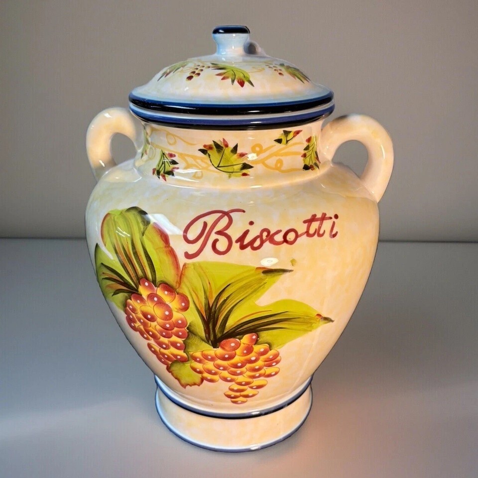 Vintage Hand Painted For Nonnies Handled Biscotti Collectible Canister Jar. Condition is New. Shipped with USPS Ground Advantage.