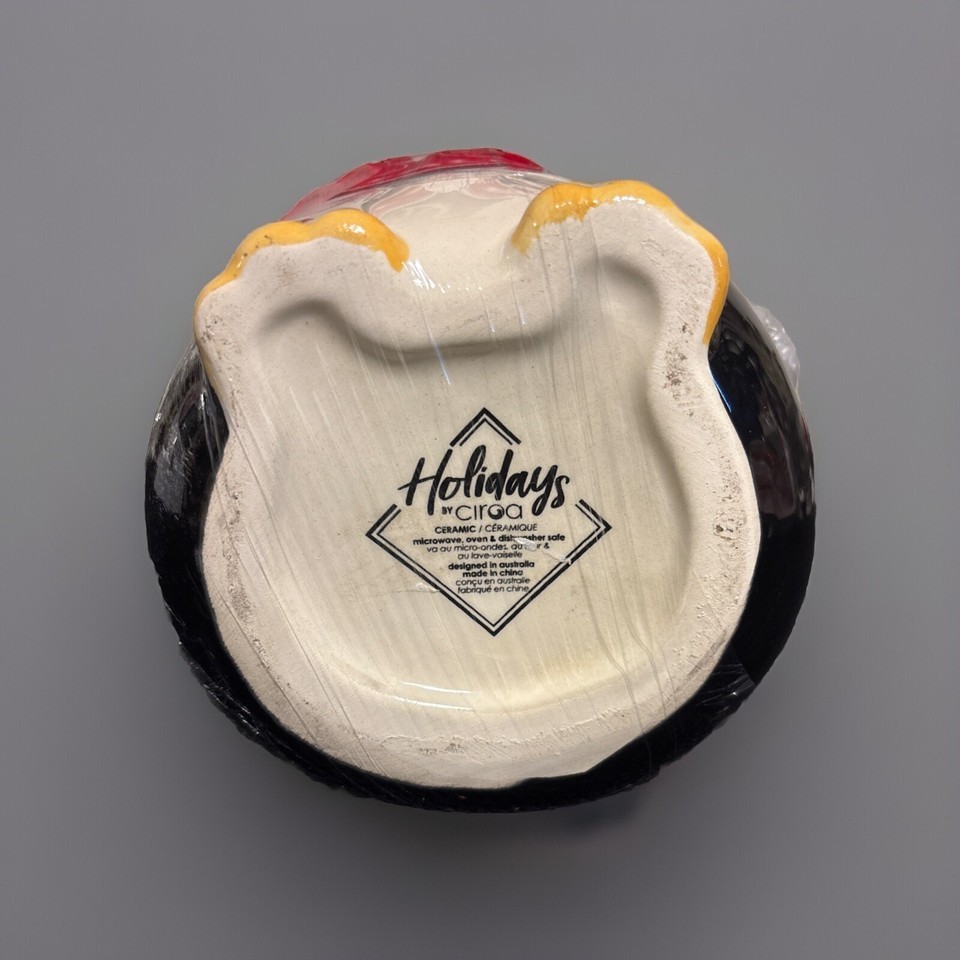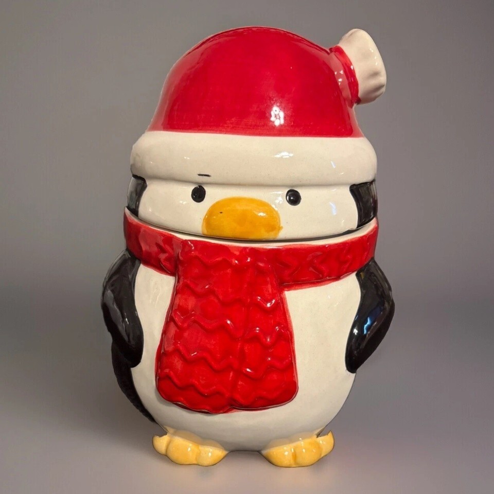 This is a rare and unique Holidays by Ciroa ceramic penguin canister/jar. It features a charming penguin design and multicolor pattern. The canister has a twist off lid and is made of ceramic porcelain materials. It is a medium-sized, free-standing item that is perfect for storing food or other kitchen essentials. The canister is an original piece and has no antique or vintage characteristics. It is suitable for teens, adults, and unisex kids. The canister is from China and has no California Prop 65 warning.