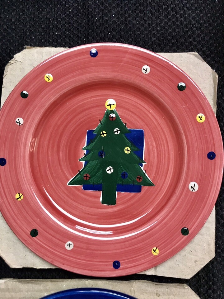 Gorgeous Vintage Make the Season Bright 4 Hand Painted Salad/Dessert Plates NIB