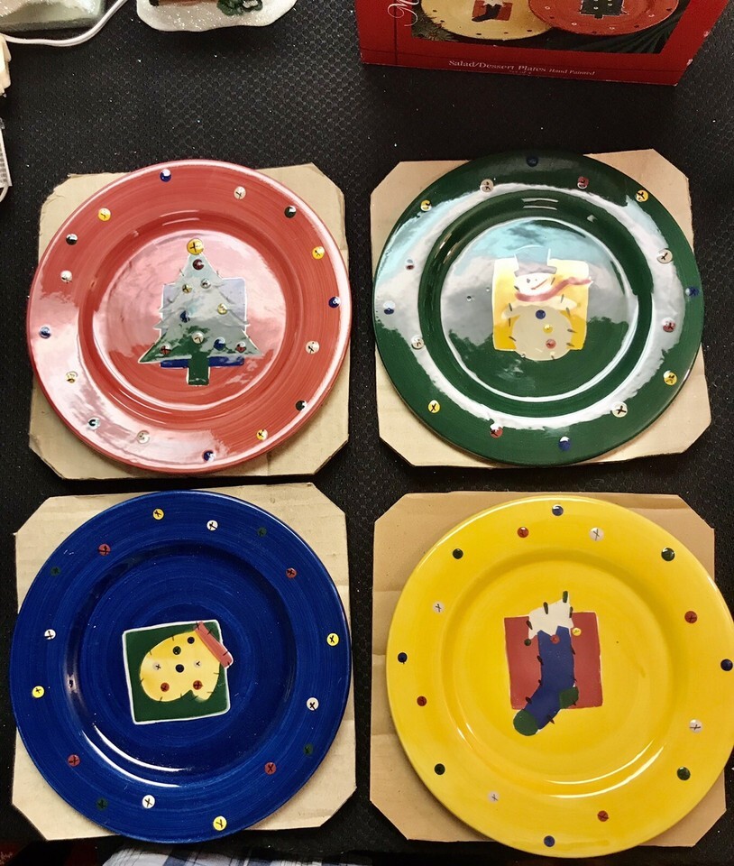 Gorgeous Vintage Make the Season Bright 4 Hand Painted Salad/Dessert Plates NIB.