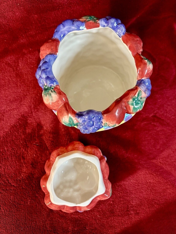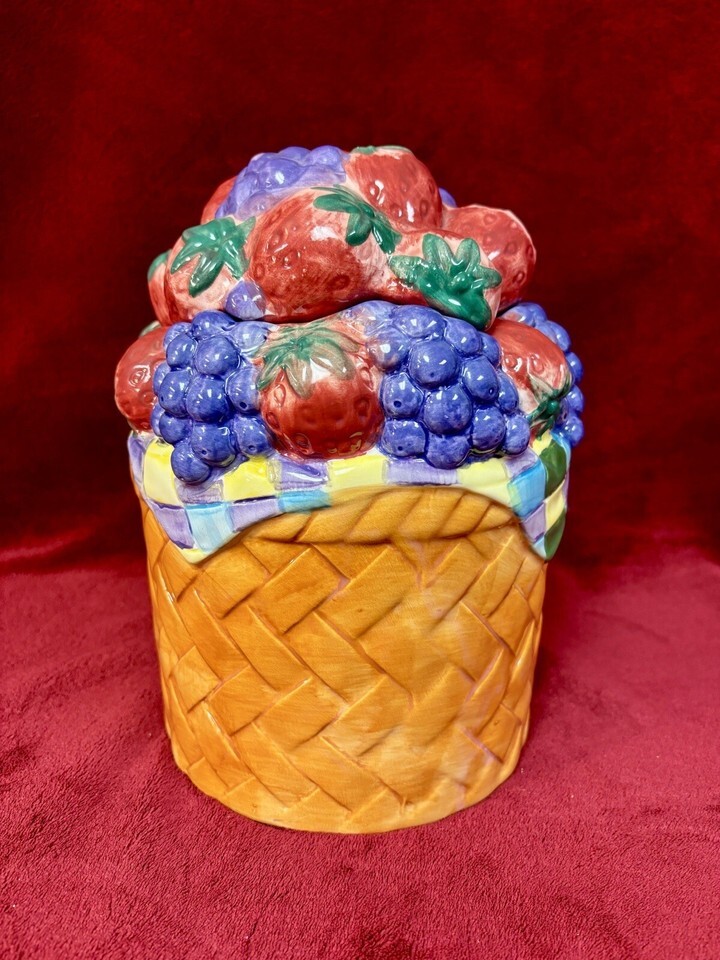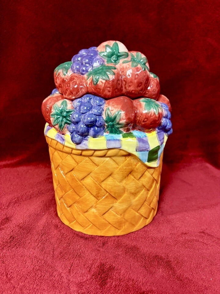 Alco Industries Ceramic Cookie Jar Canister Grapes Leaves in Basket 8" Tall. Shipped with USPS Ground Advantage.