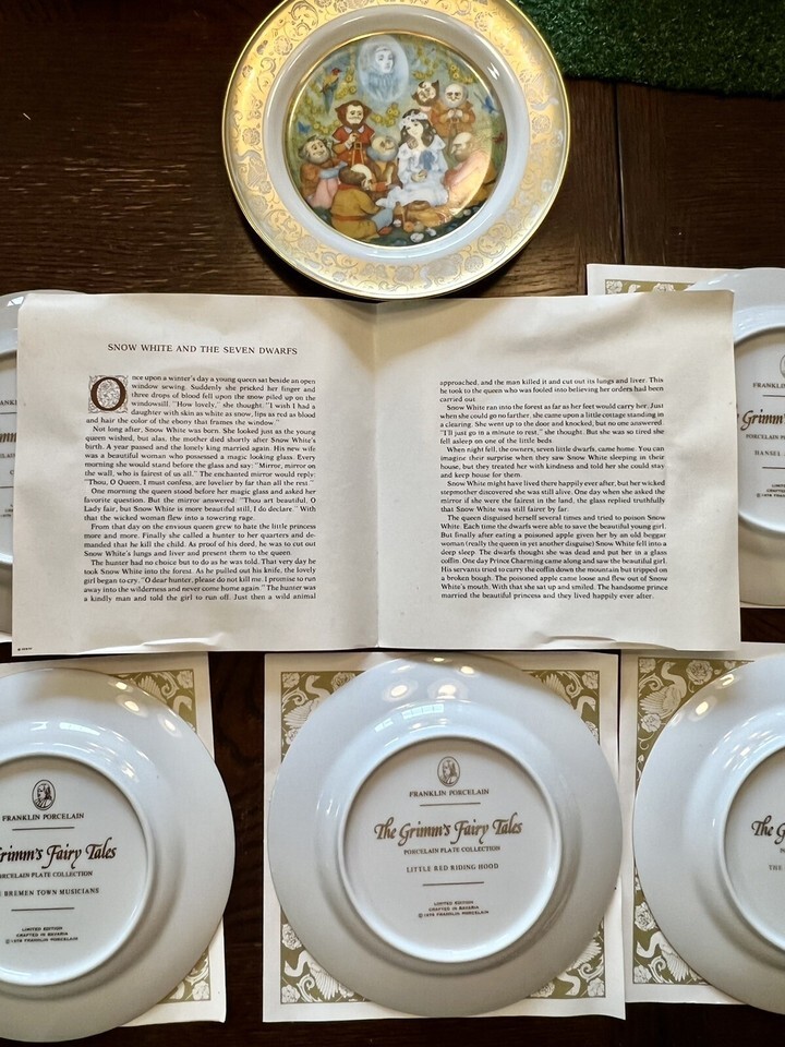 Gorgeous Grimm's Fairy Tales Set Of 6 porcelain plates Franklin Mint 1978.