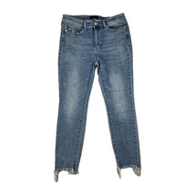 Judy Blue Jeans Womens Size 13/31 Skinny Fit Bleach Splatter Raw Hem Blue Denim