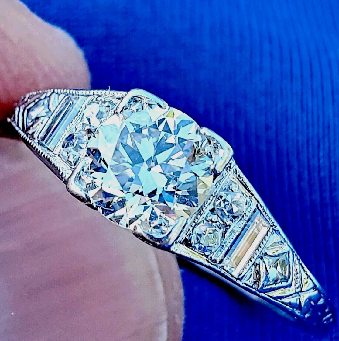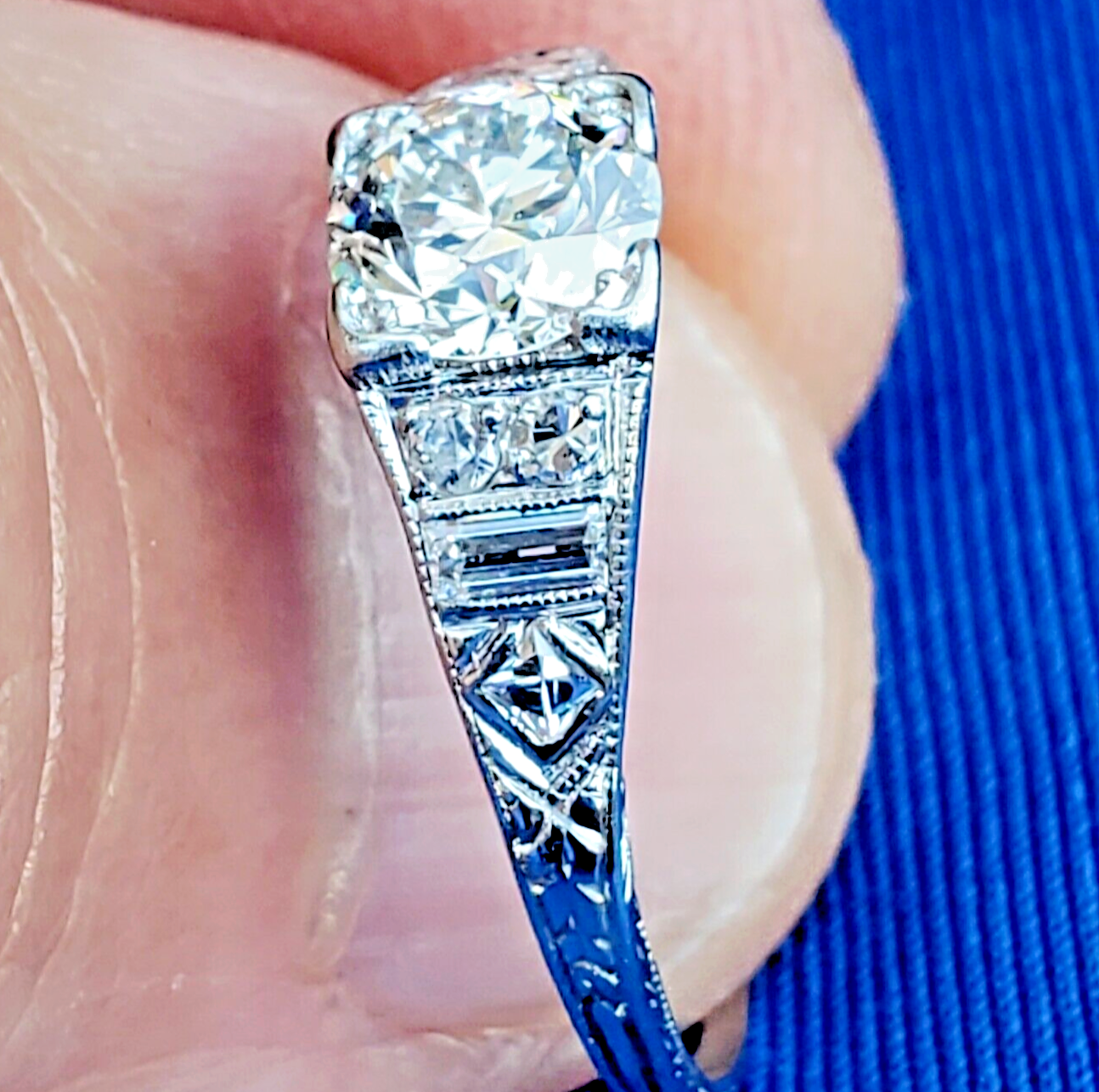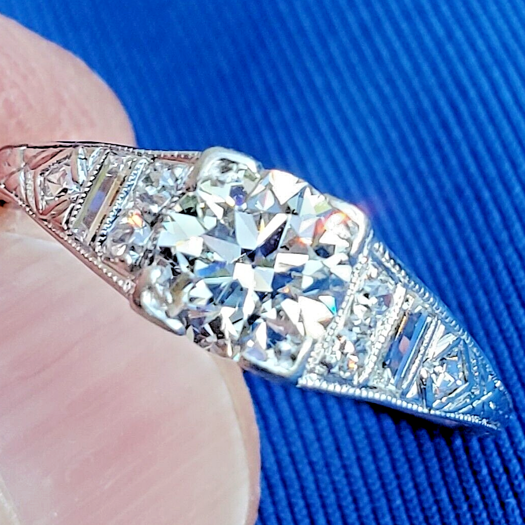 Earth mined Diamond Deco Engagement Ring 1 carat Platinum Statement Solitaire 7