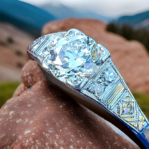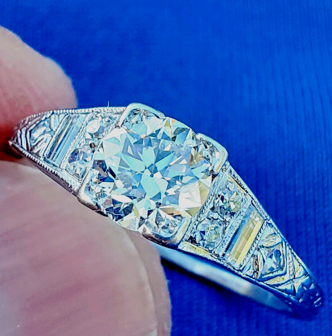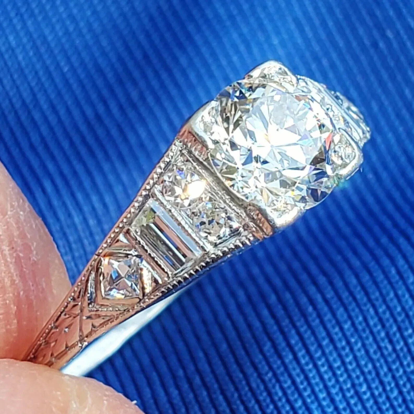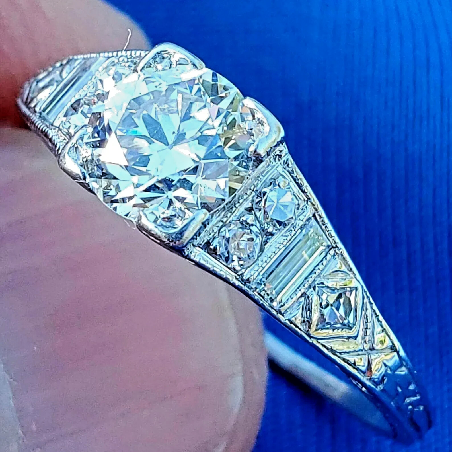Earth mined Diamond Deco Engagement Ring 1 carat Platinum Statement Solitaire 7
