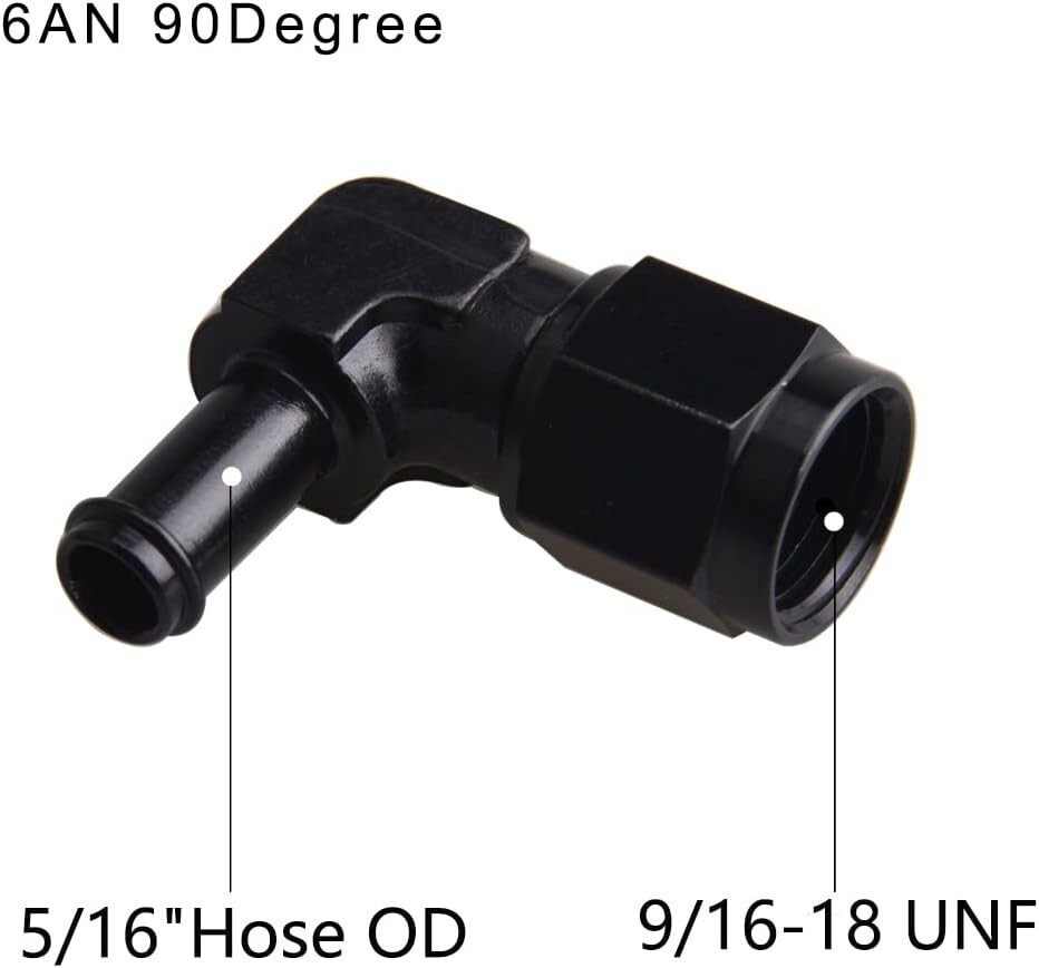 " barb to 6AN Female, the thread size of 6AN is 9/16-18UNF,Made of aluminum alloy 6061-T6, Anodized Finish for Durability