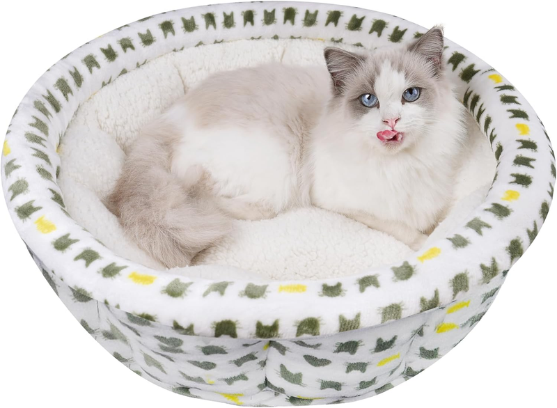 ?CLAMING ANXIETY? :Ideal for pets to curl up or sprawl, the raised rim around of round kitten puppy bed provides warmth safety to your pets. Our calming kitten puppy bed helps your pup to calm down faster, relieve anxiety, and sleep well. What a perfect gift for your pal!