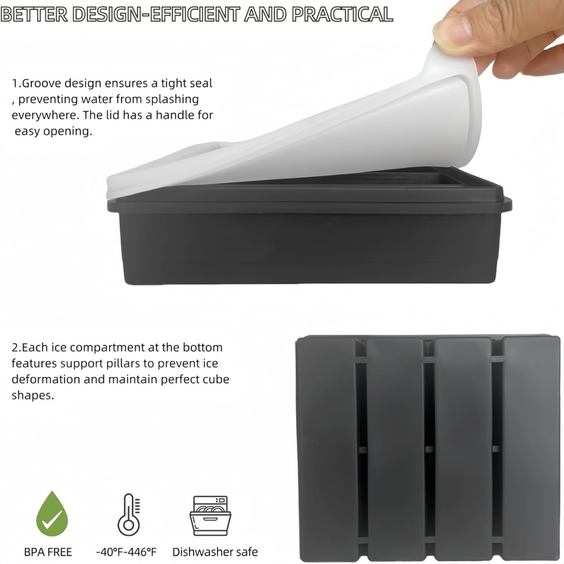 [Leak-Proof Lid Stackable Design] Each ice cube mold with lid features a snug, leak-proof cover to prevent spills in the freezer. Stackable ice trays save space and keep odors out, making them ideal for organizing ice cube molds for cocktails or prepping ingredients.